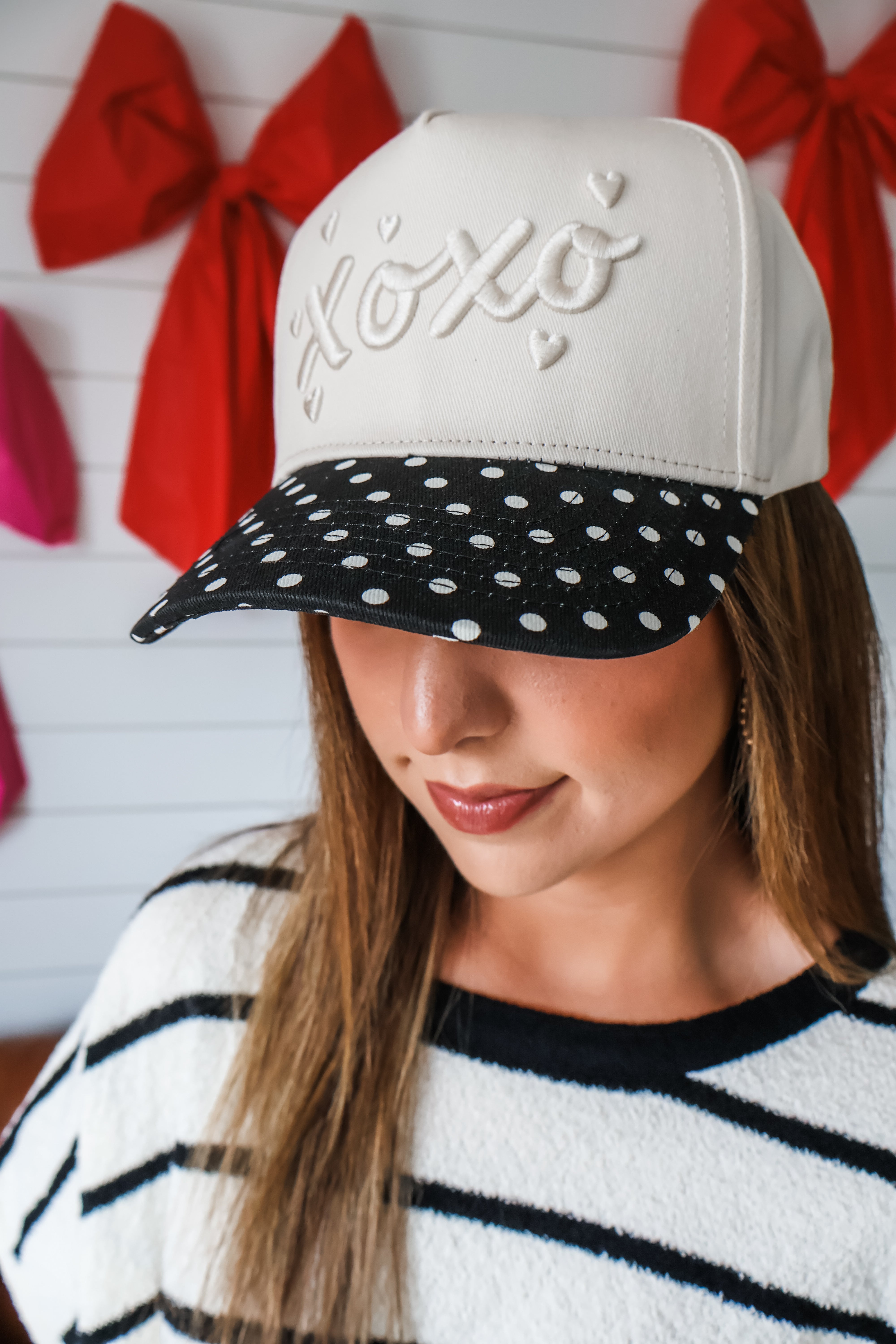 Add a pop of polka dot to any outfit with this cute trucker hat! With a fully embroidered design, printed contrast bill and an adjustable snap closure. One size. Materials may have natural variations. Colors may vary from different viewing devices and lighting.