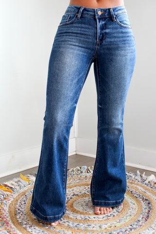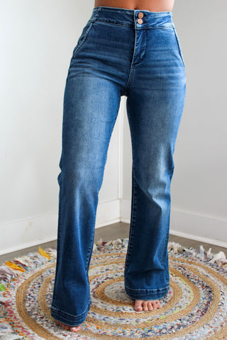 Perl Double Button Bootcut | Tummy Control • Medium Wash