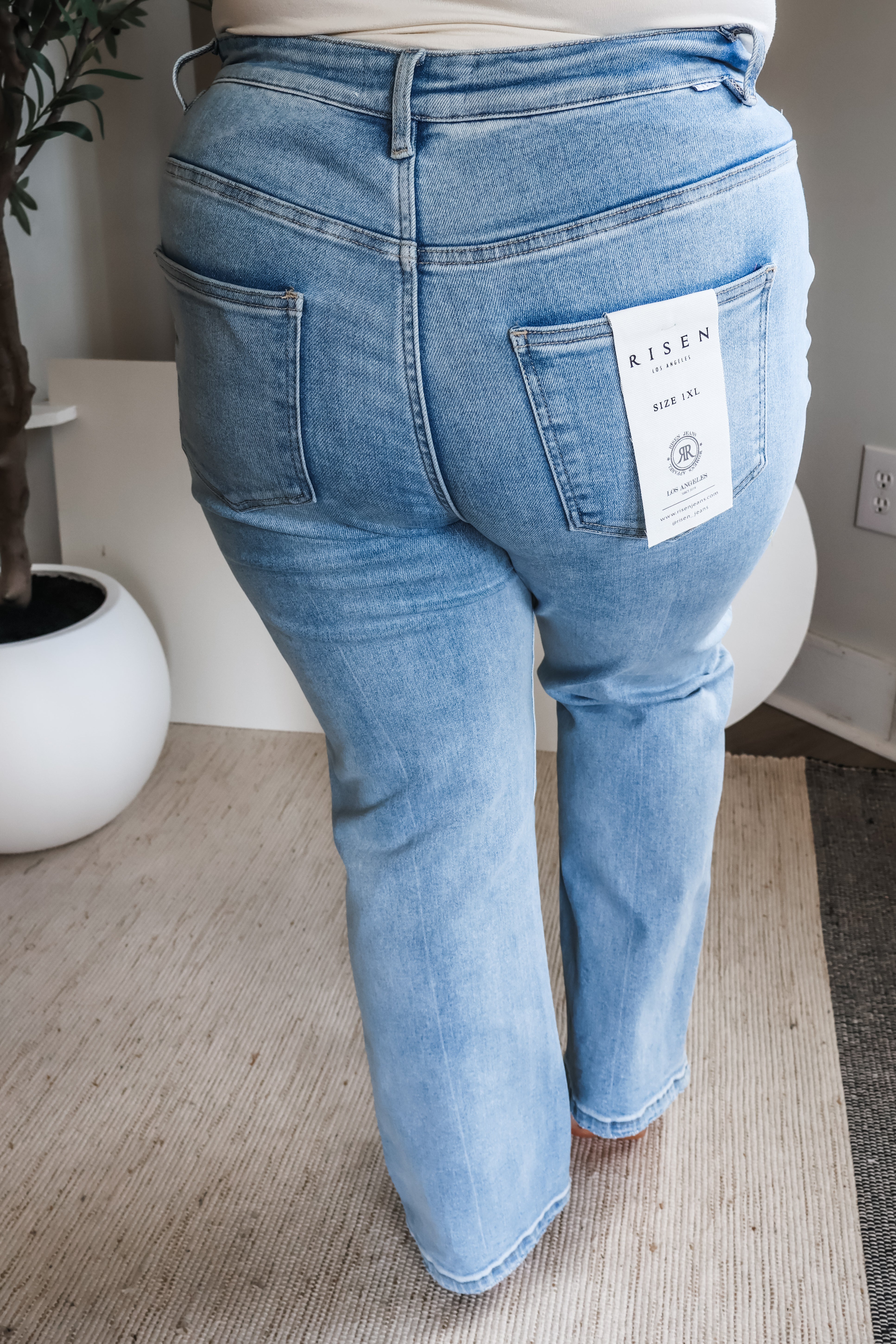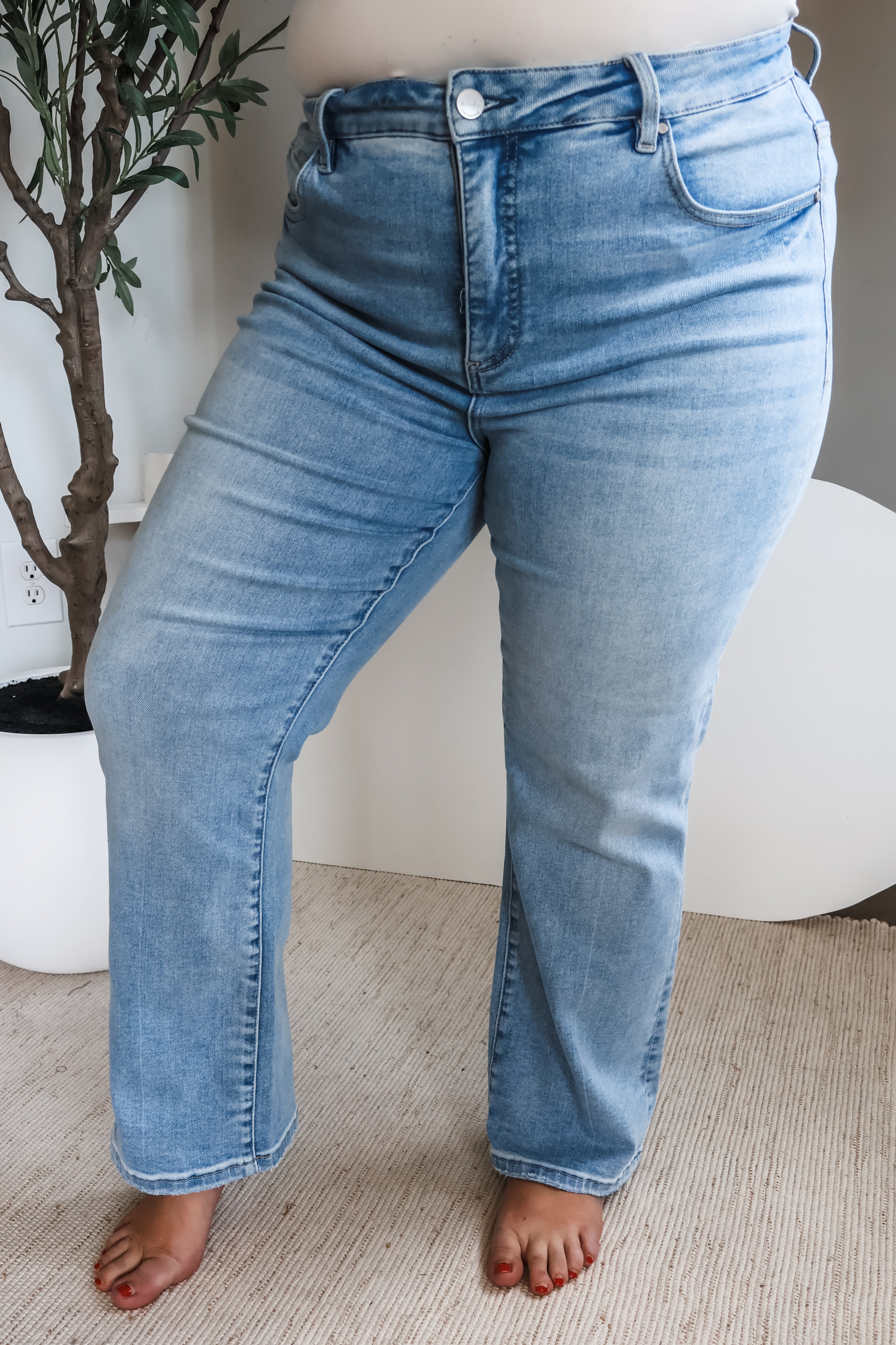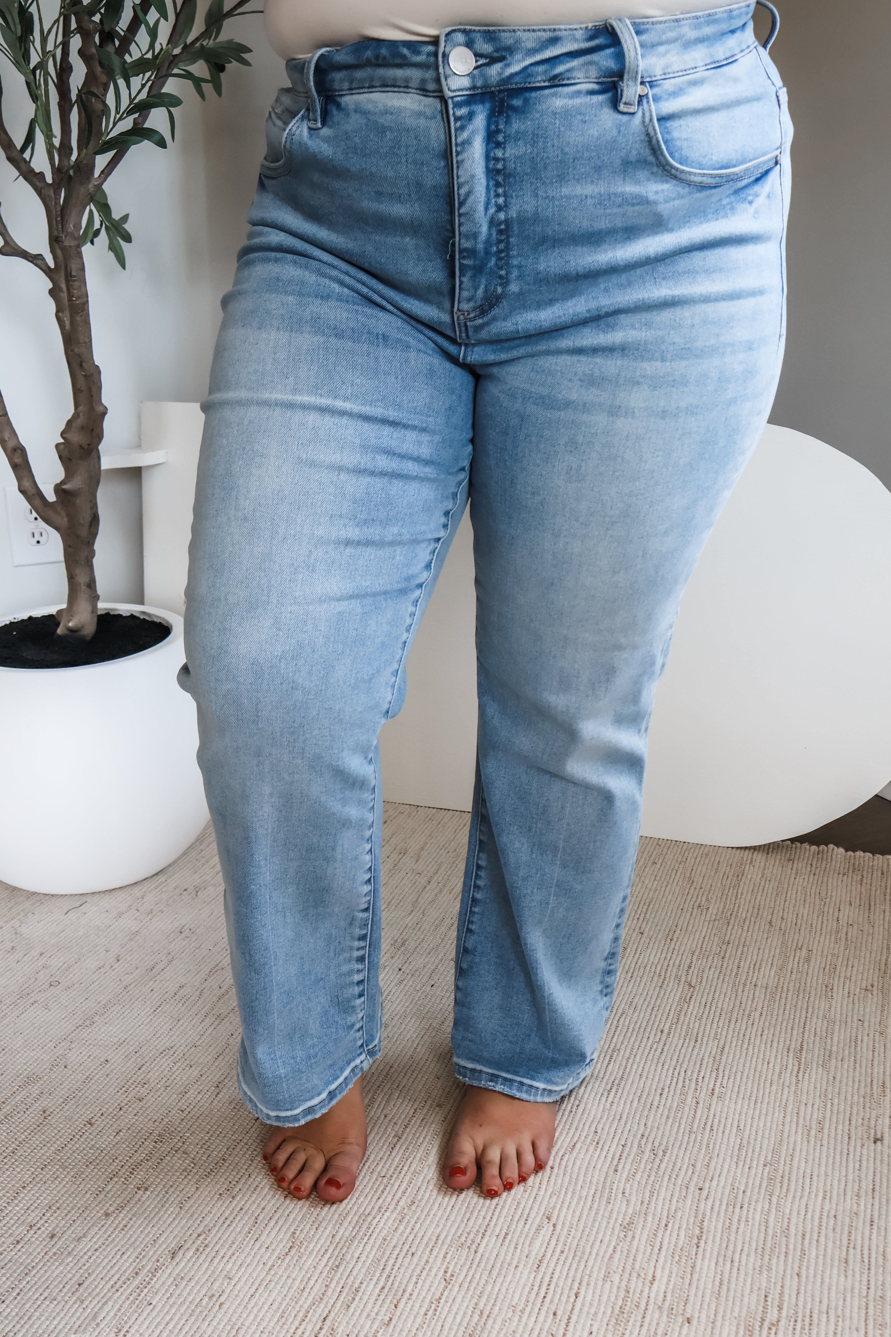 Introducing Elaine — a true denim staple you can dress up or down for any season, any occasion. The light wash non-rip fabrication makes it so versatile and timeless, and tummy control waistband provides a comfortable fit. Fabricated in a soft stretch denim that hugs your curves with a classic straight leg silhouette that flatters all.