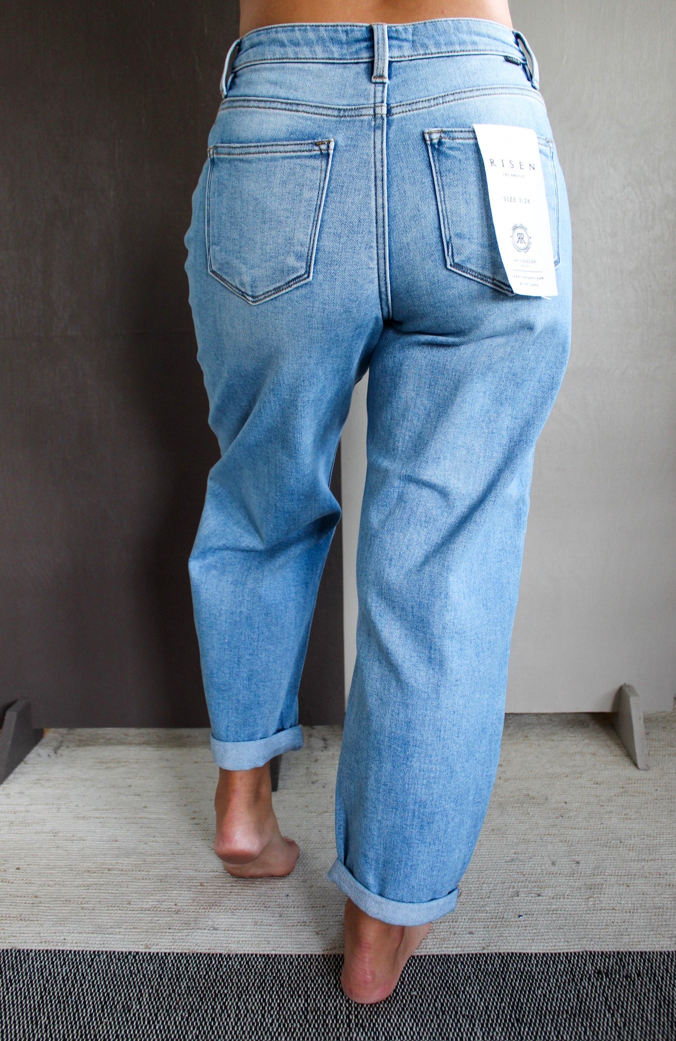 Size + fit: Featuring a high rise fit with a 5-pocket design, silver hardware, single button front and zip fly closure. 28” inseam, Risen. 93% Cotton, 5% Polyester, 2% Spandex. Model is 5’5” and wears 03.