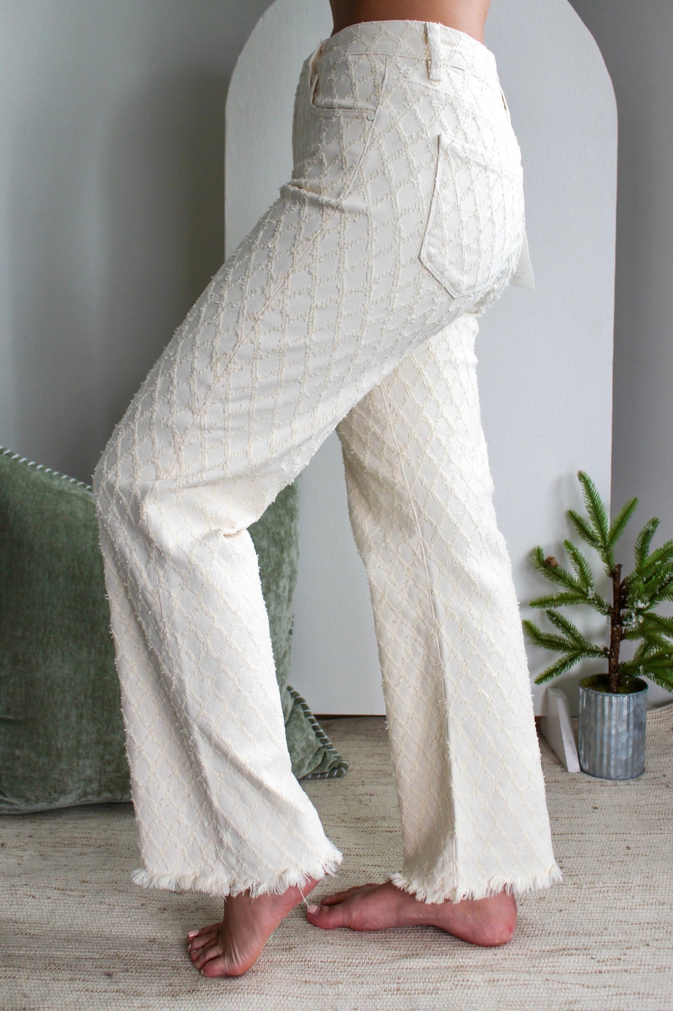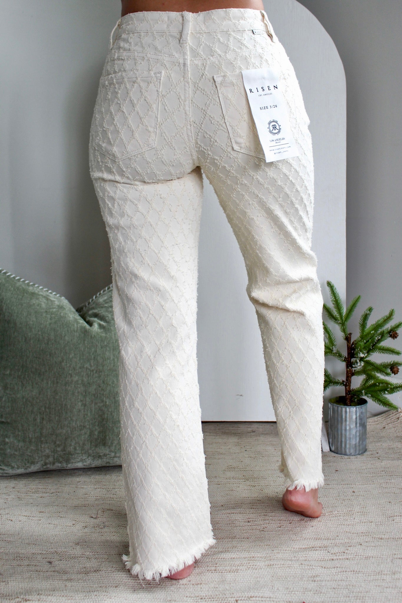Size + fit: With a high rise fit, 5-pocket design, matching hardware, single button front and zip closure. 29” inseam, Risen. 98% Cotton, 2% Spandex. Model is 5’5” and wears 03.