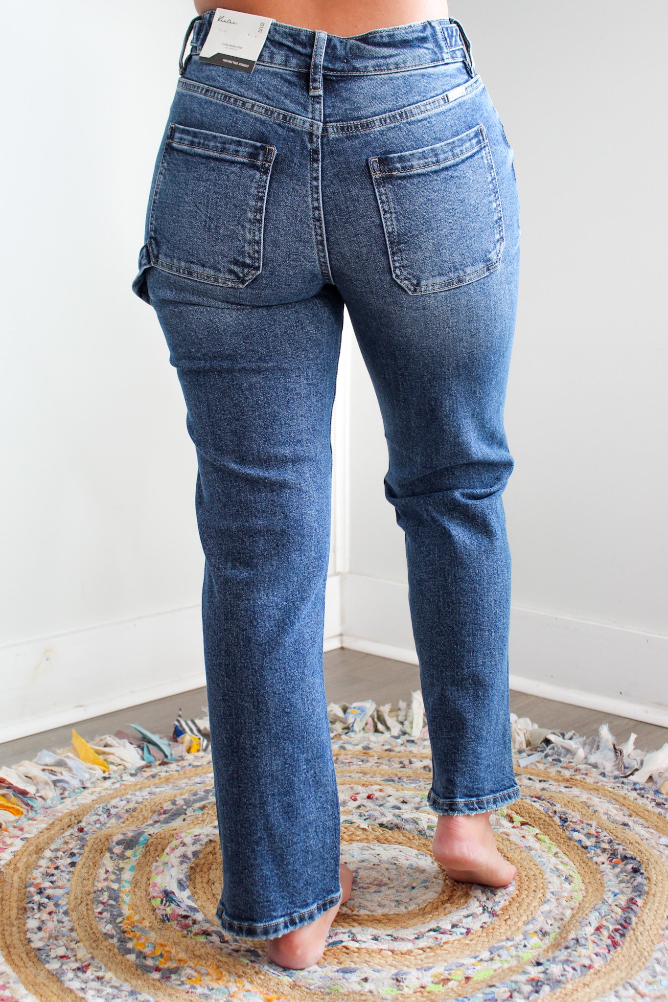 Size + fit: With a high rise fit, classic 5-pocket design, single button closure, and zip fly. 29” inseam, KanCan. 99% Cotton, 1% Spandex. Model is 5’5” and is wearing 03.
