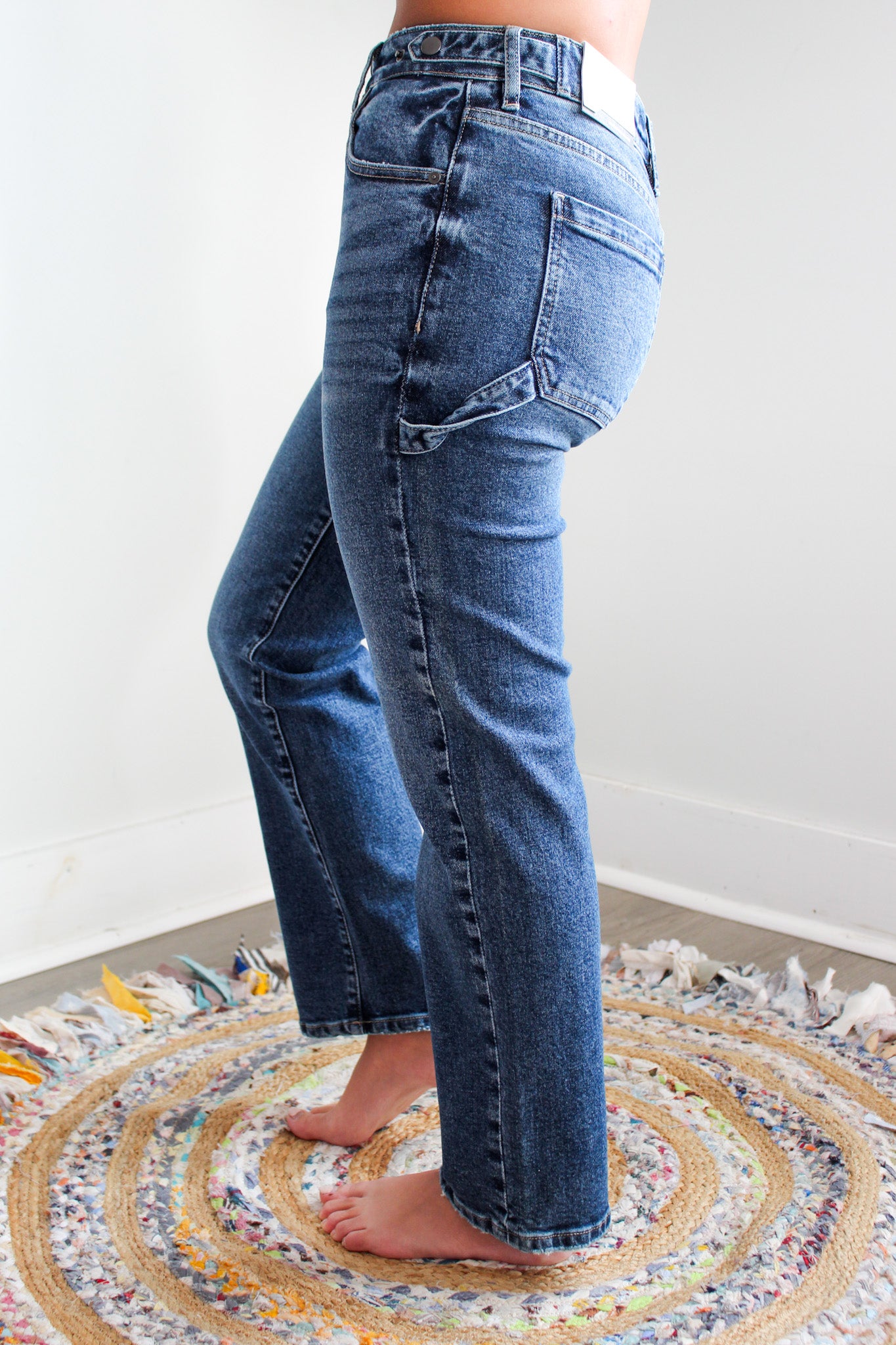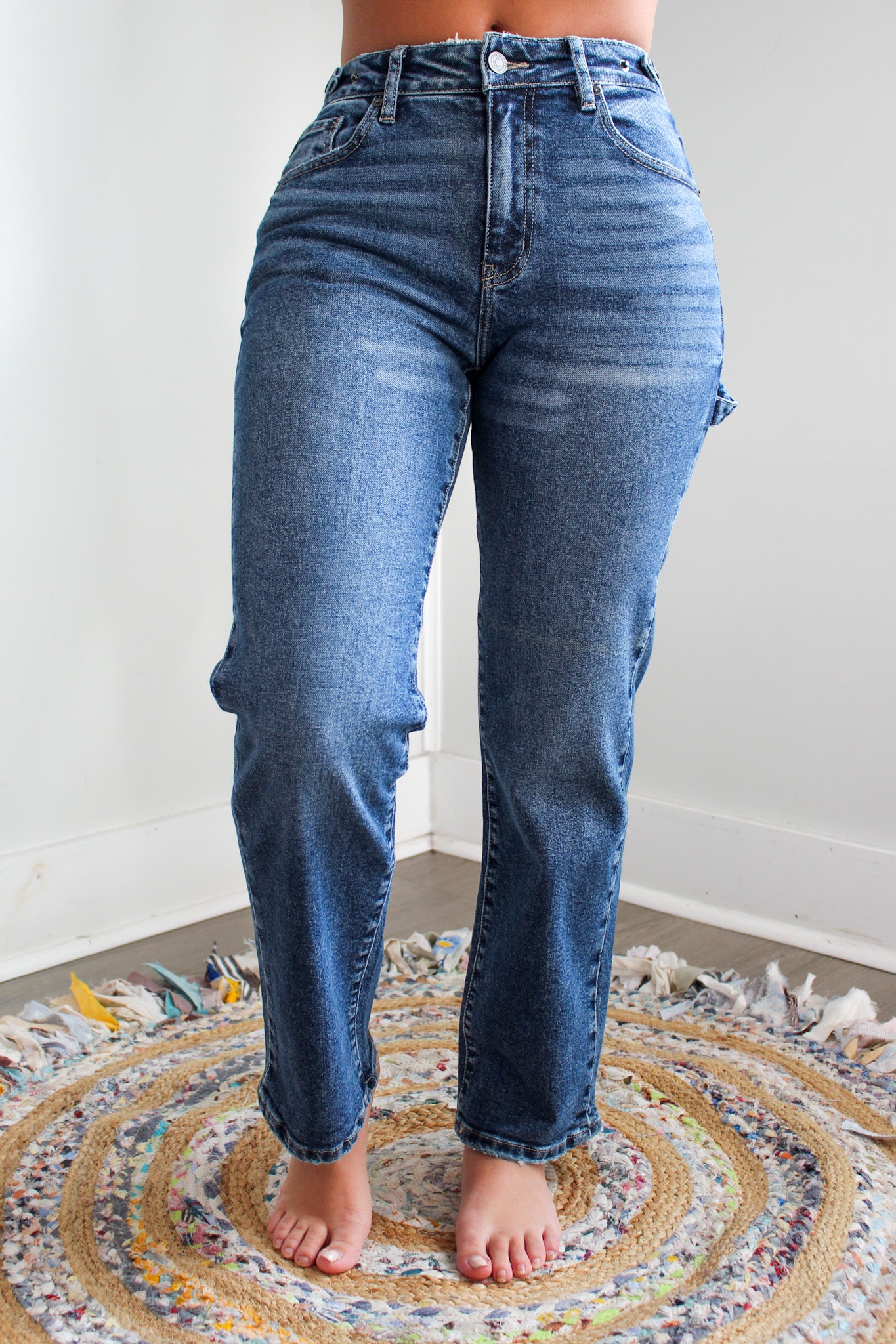 Our Mabel True Straight Jeans are perfect for a casual everyday denim. This non-rip pair offers the classic straight cut with a high waistline, making them both stylish and comfortable to wear. Features a hammer loop, extended tab and snap button on the waistband for an adjustable cinch and extra security.