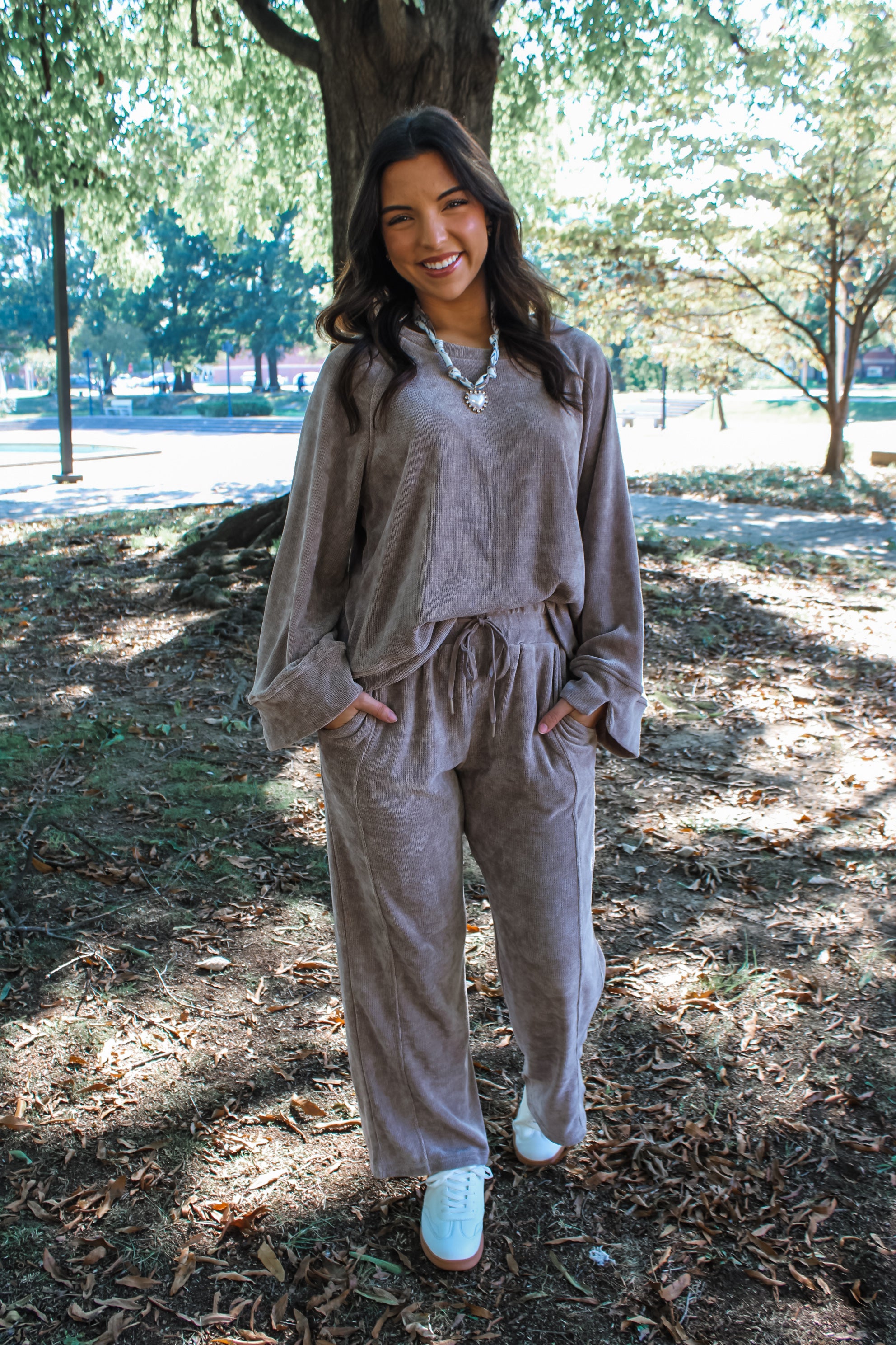 Cozy up in luxe essentials! These pants are a modern staple that’s equal parts chic and comfortable. The chenille knit fabrication provides a velvety-soft feel, while the simple straight leg silhouette gives it an easy fit. Featuring a drawstring stretch waist, hand pockets and seam detailing on the front. It’s a versatile essential you’ll keep reaching for whether you’re going for coffee, running errands or chilling at home.