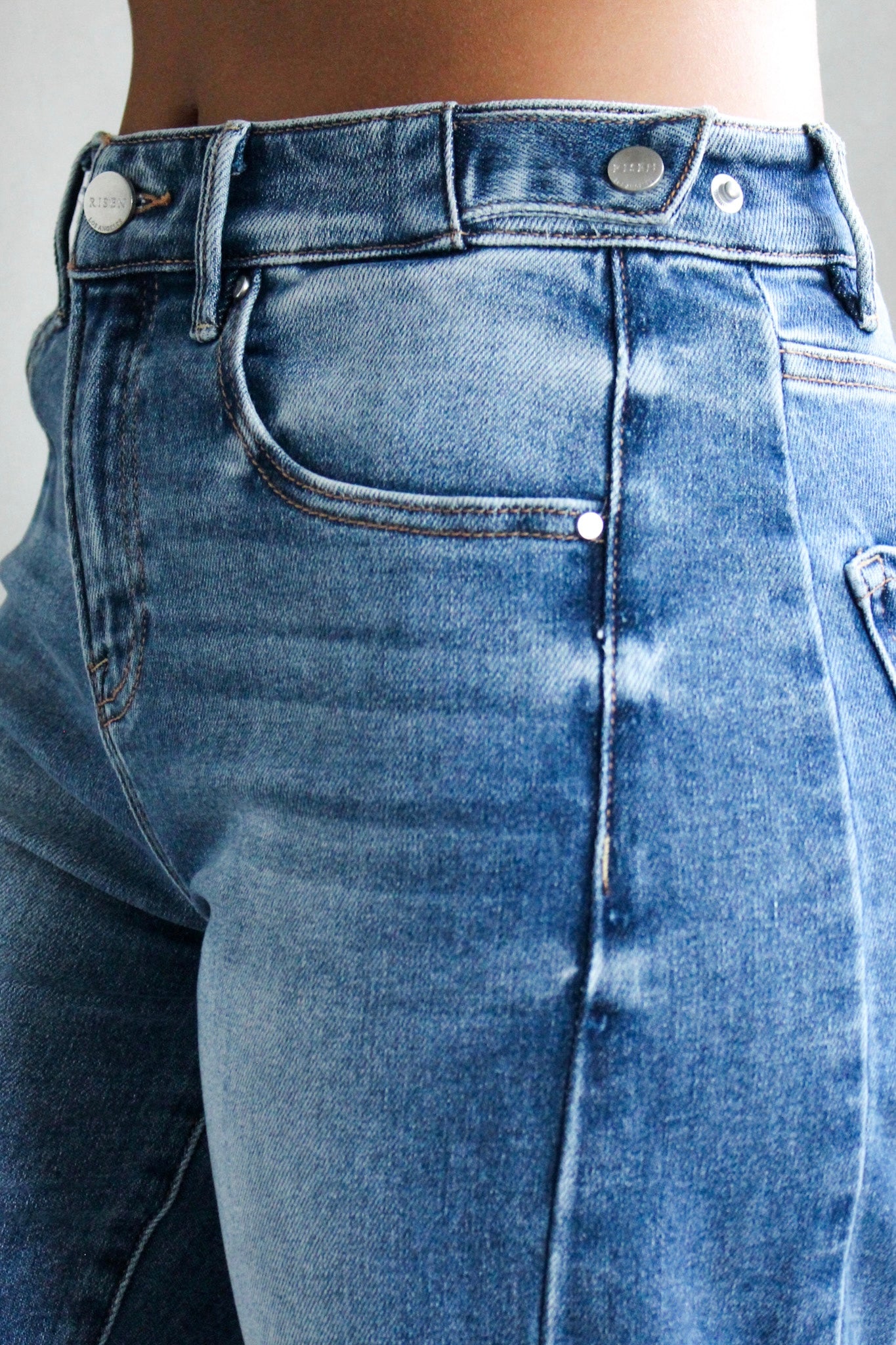 Redefine your denim style with our Phoenix Barrel Jean. The paneled fabrication gives this pair a relaxed yet structured look, and the trendy silhouette gives it an edgy fit. Crafted from a soft stretch denim with a snap button waist for a custom fit that flatters the figure. With contrast stitching, the perfect amount of whiskering and fading, and a finished hem.