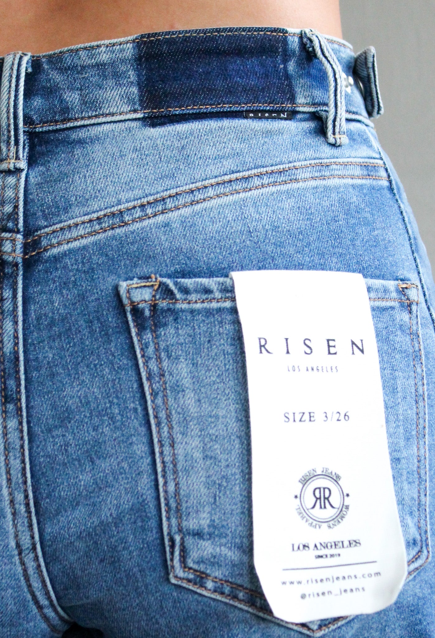 Size + fit: With a high rise fit, 5-pocket design, silver hardware, single button front and zip fly closure. 27” inseam, Risen. 61% Cotton, 35% Polyester, 3% Rayon, 1% Spandex. Model is 5’5” and wears 03.