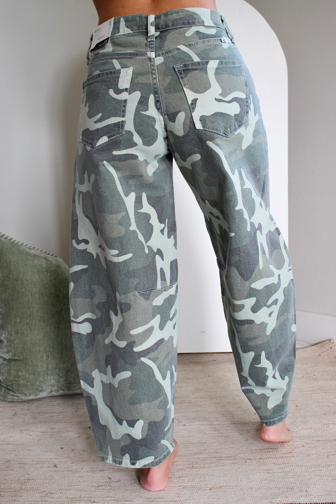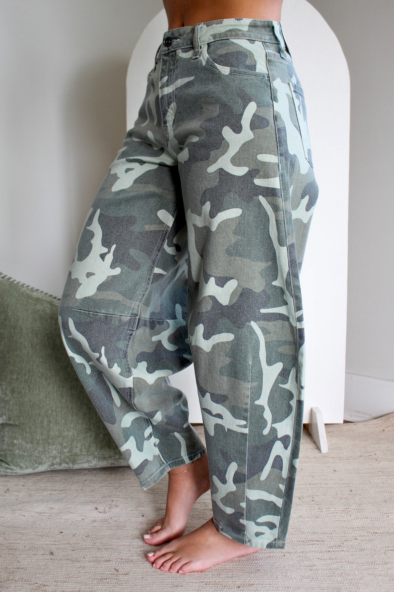 Give your wardrobe a fresh start with edgy and eye-catching camo print denim! Our Sage Jean features a cool and trendy horseshoe silhouette that is meant to sit slightly under your waist then flares wide down the thigh to a closer fit at the ankle giving that oversize baggy look.
