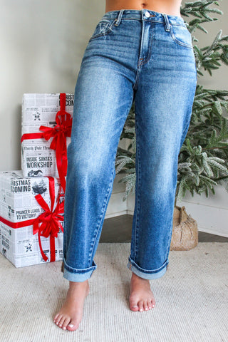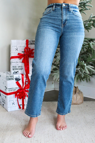 Callie Frayed Hem Straight | Tummy Control • Dark Wash - PLUS