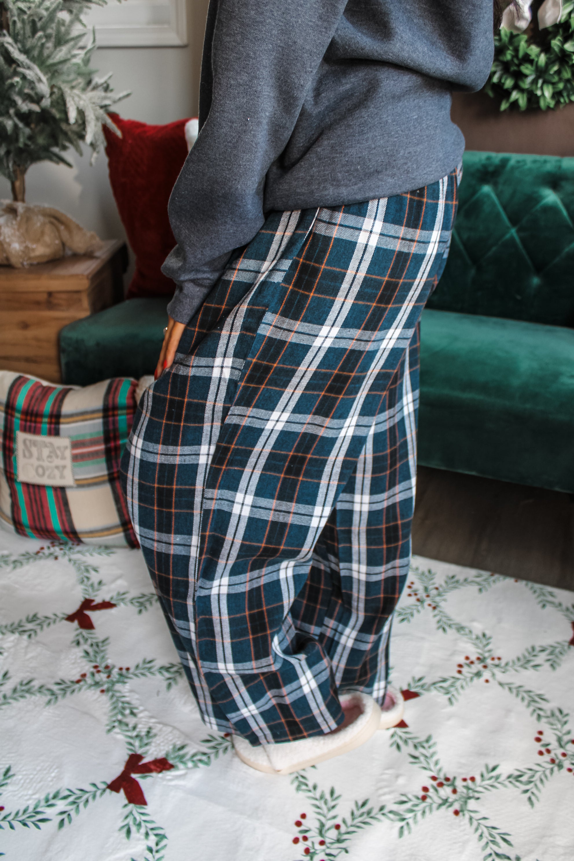 Perfectly printed in quintessential plaid, these pants are a classic staple for the holidays. Crafted in brushed flannel, it’s an easy go-to for holiday movie marathons, baking cookies & weekends with the family. Featuring a stretch waistband, button detailing and a loose wide leg silhouette.