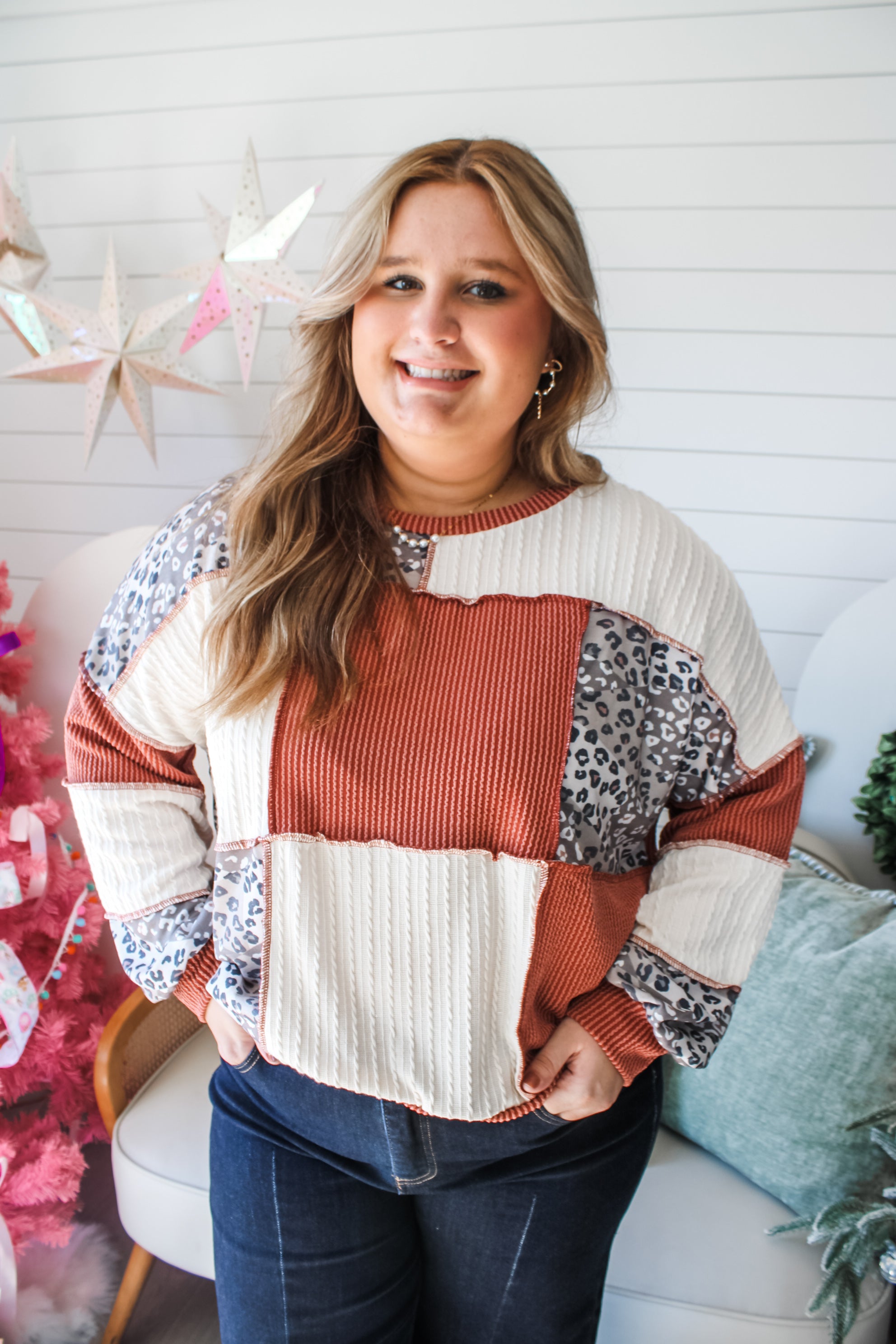 So eye-catching in color block, this top is a striking look you can style for work or play! The multi-knit patchwork fabrication provides texture and contrast, while the relaxed silhouette gives it an easy and comfortable fit. With a crewneck, exposed seaming design and cuffed balloon sleeves.