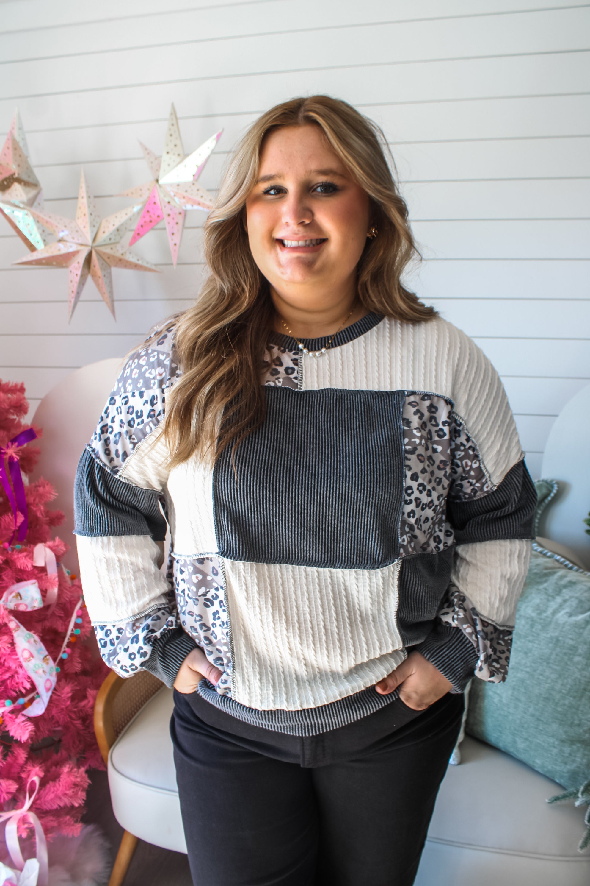 So eye-catching in color block, this top is a striking look you can style for work or play! The multi-knit patchwork fabrication provides texture and contrast, while the relaxed silhouette gives it an easy and comfortable fit. With a crewneck, exposed seaming design and cuffed balloon sleeves.