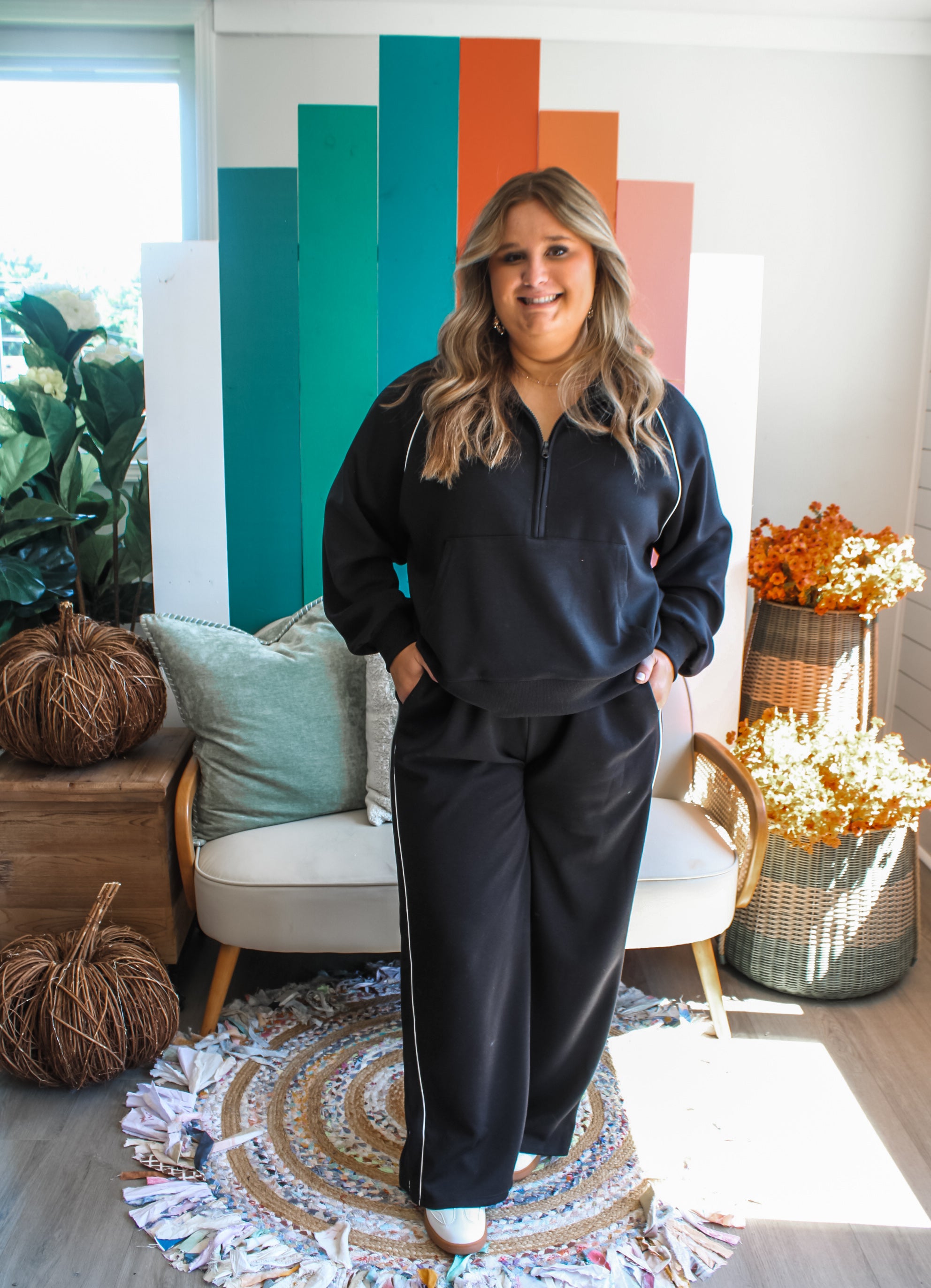 Smooth to the touch in a scuba knit fabrication, this top is a cool style go-to. It’s a modern essential featuring a retro-inspired half zip neckline, contrast piping detail, raglan sleeves and a relaxed overall fit.
