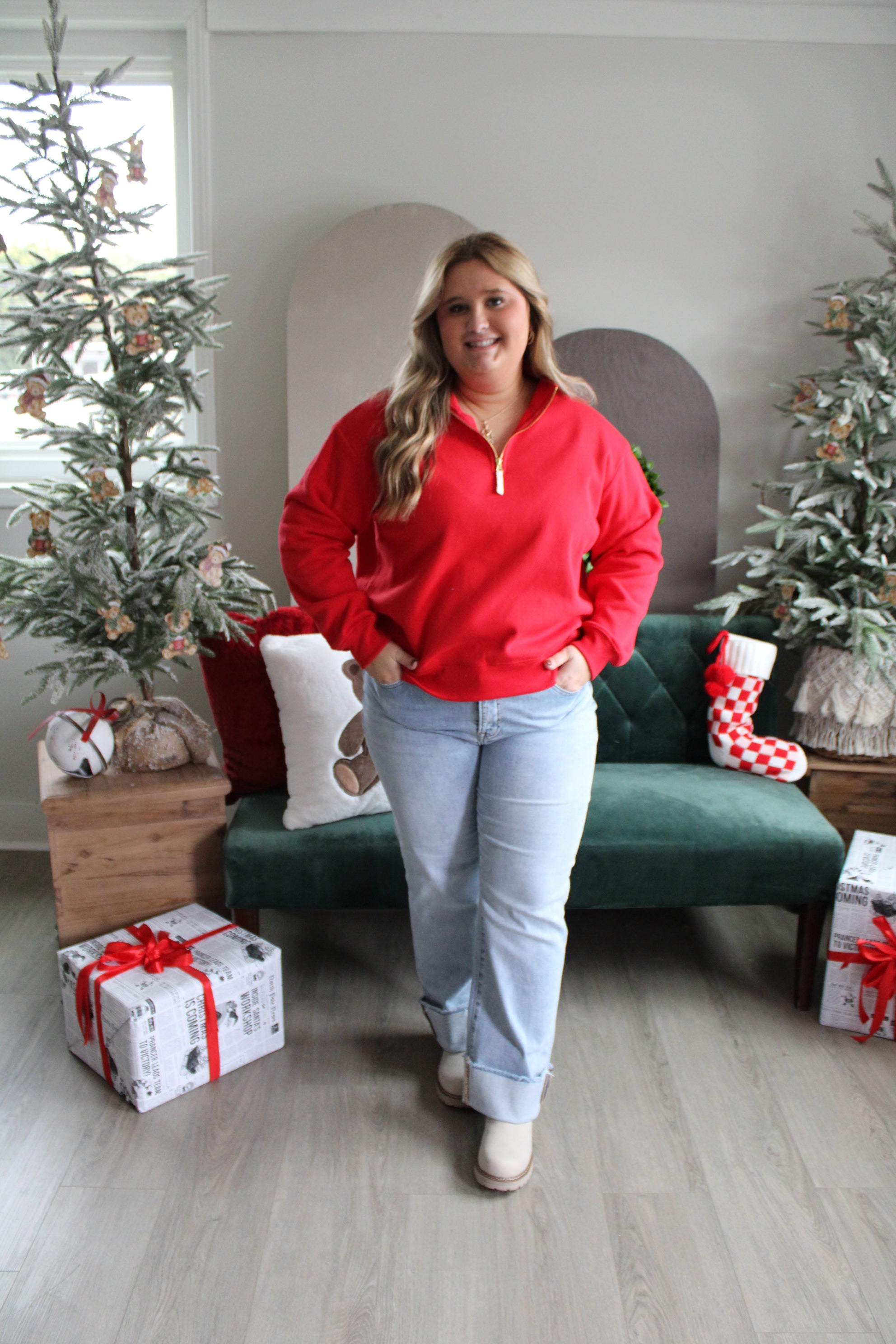 ‘Tis the season to get cozy! Fabricated in a soft fleece-lined knit, this stylish pullover will keep you warm and toasty for the holidays and beyond! Featuring a standing collar, half zip neckline and rib band finishing for stretch and recovery. The relaxed silhouette provides a modern and comfy fit for a look you can easily toss over corduroy pants, lined leggings or distressed jeans.
