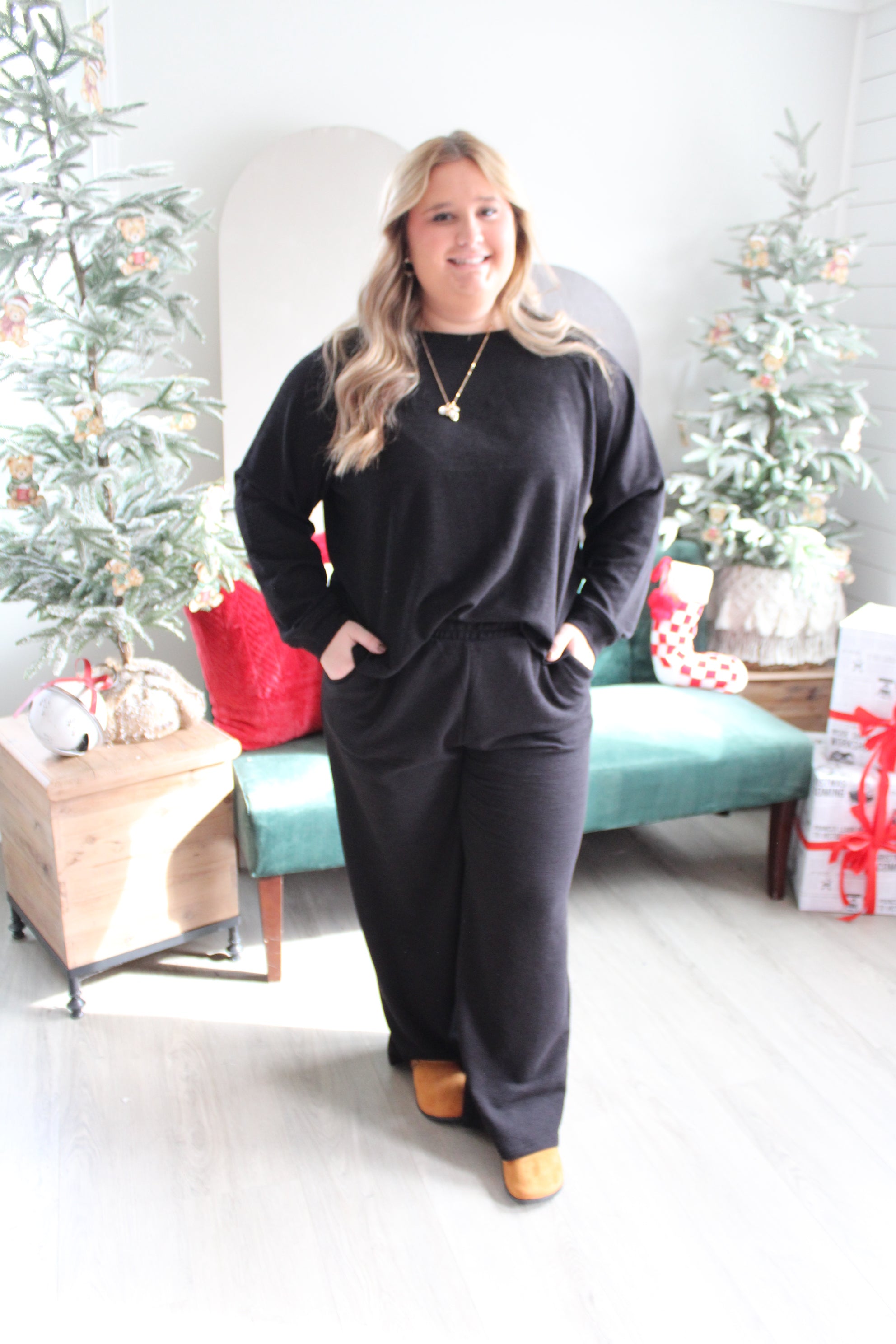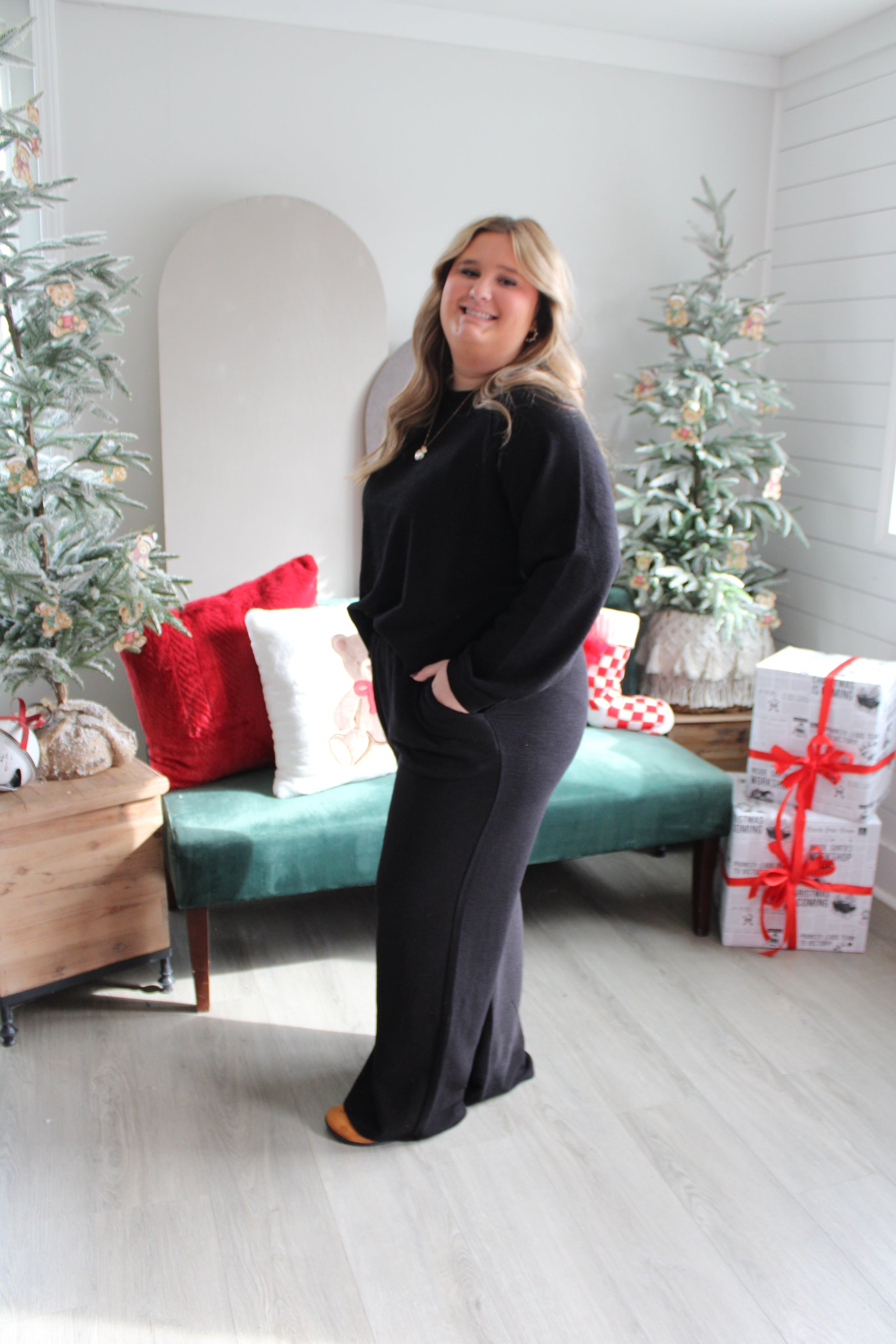 Celebrate the season in style! Paired to perfection, our Home For The Holidays Pant Set is an effortless look whether you’re out and about or chilling at home. Crafted from a beautifully textured slub knit, both pieces are so easy to mix and match with the rest of your wardrobe. The crewneck top features cuffed raglan sleeves and a modern loose fit, and the pants feature a stretch drawstring waist, hand pockets and a straight leg silhouette.