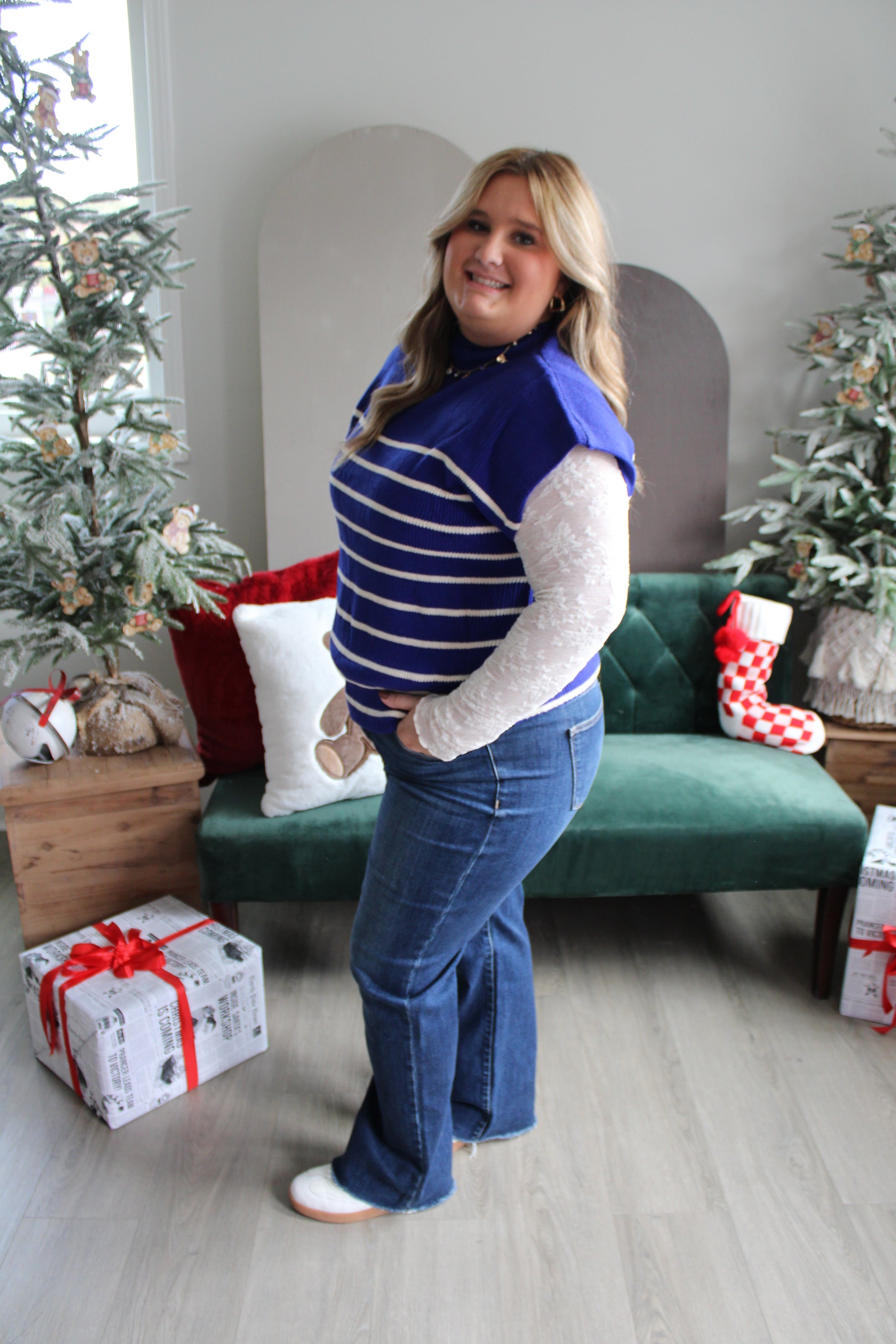 Size + fit: Relaxed fit. XL 14-16, 1X 16-18, 2X 18-20. 100% Acrylic. Model is 5’5” and wears 1X.