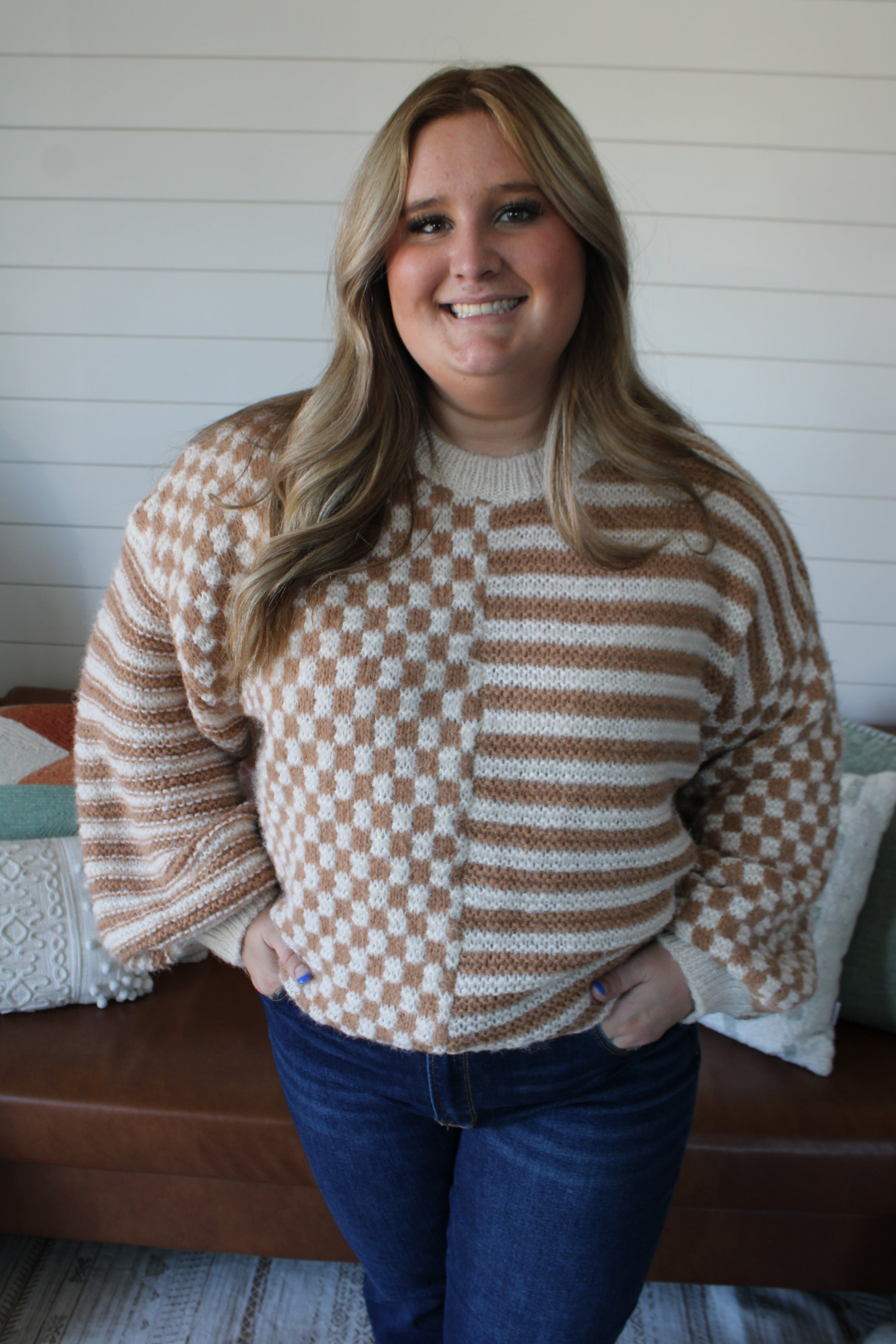 Main Character Checker Stripe • Tan - PLUS - FINAL SALE