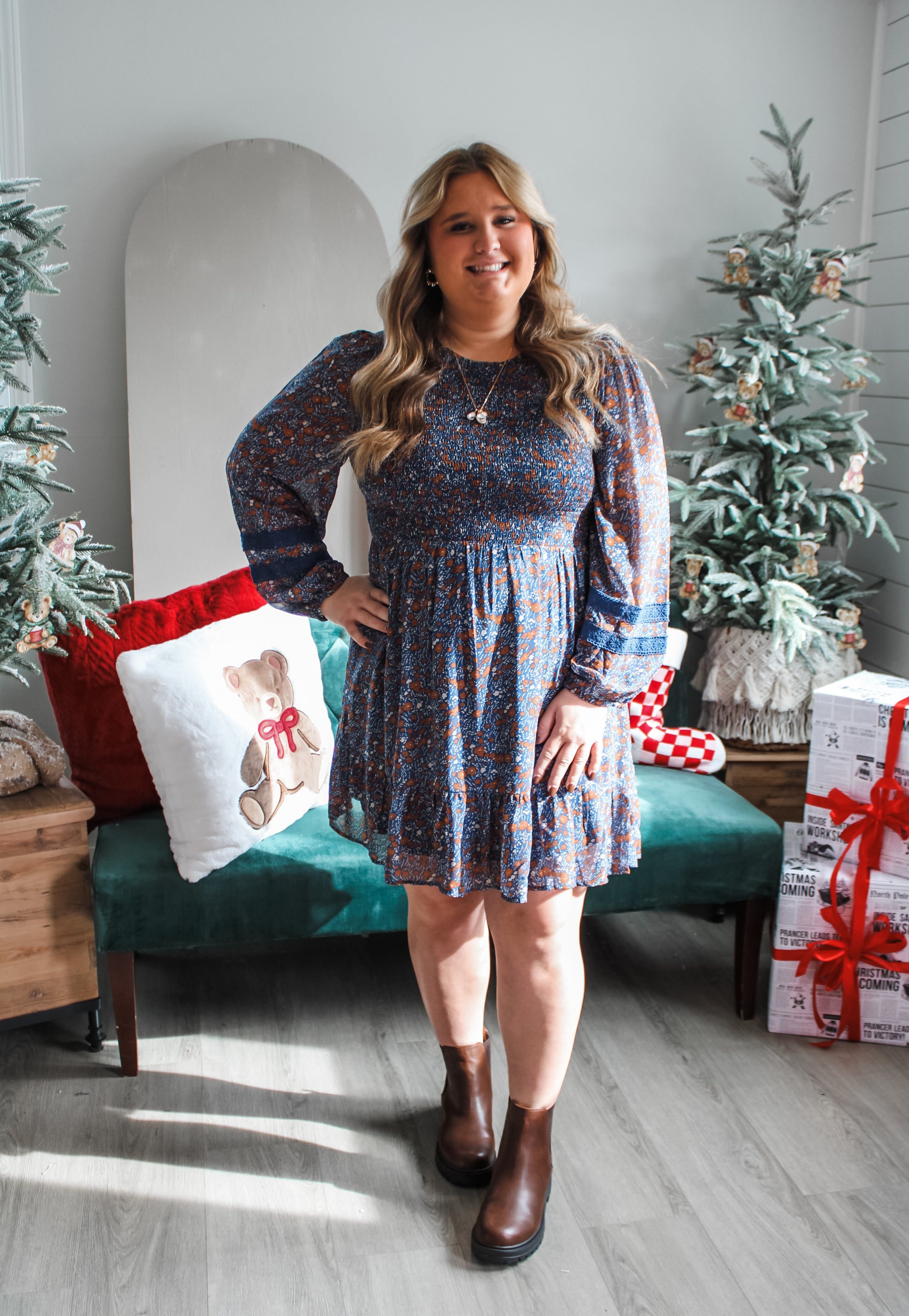 So sweet in ditsy floral, this flowy dress is an effortless look whether you dress it up or down. Featuring a smocked bodice that hugs your curves with an empire waist silhouette for a flattering fit. With a crew neckline, lantern sleeves with lace trim detailing and a ruffle hem.