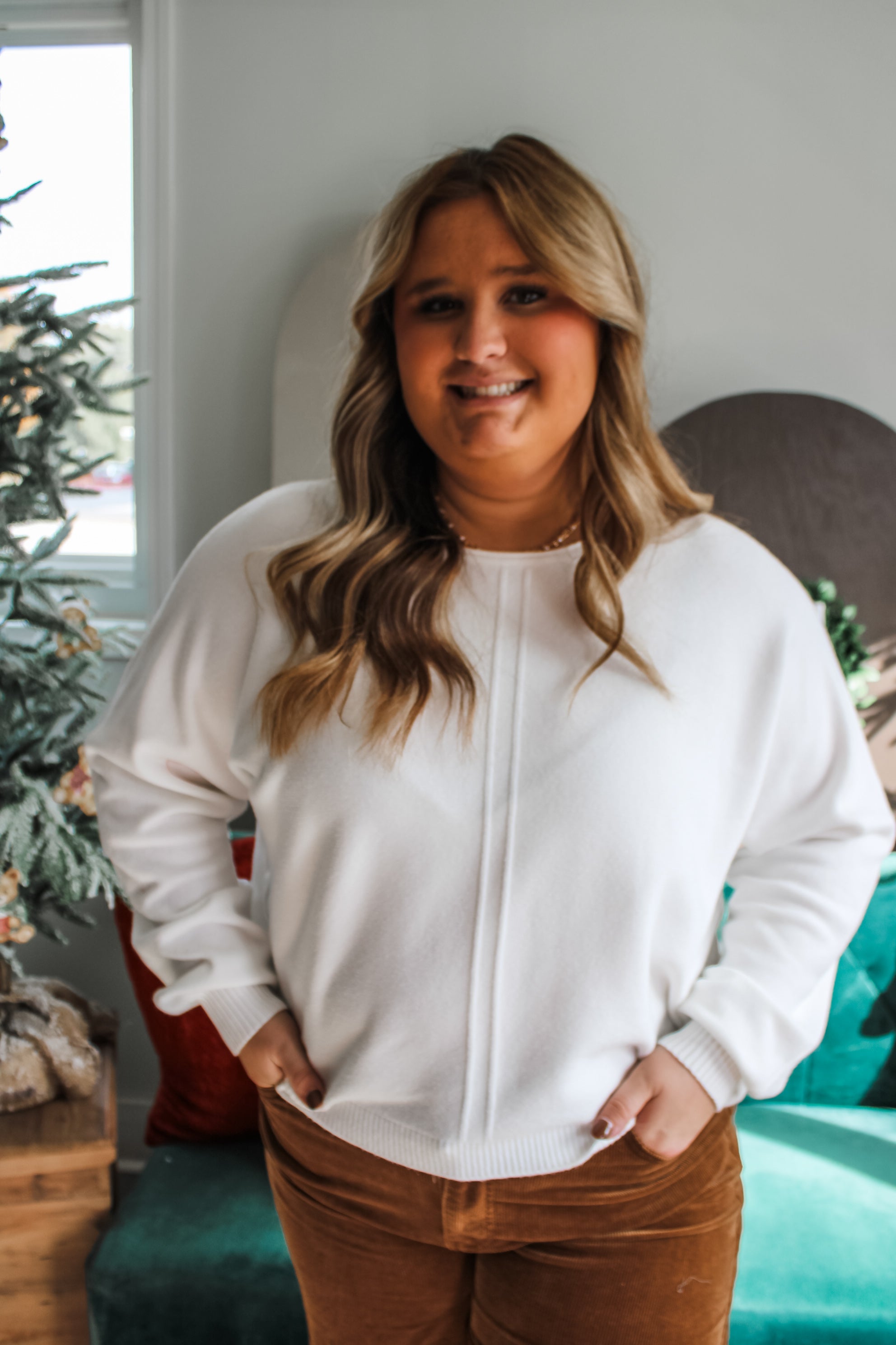 Cozy knits that will keep you stylish from workdays to weekends. Fabricated in a soft knit that drapes beautifully over the body, this sweater is a quintessential look you can dress up or down season after season. Featured in a slouchy dolman silhouette with a crew neckline, striped detailing on the front and rib contrast finishing.