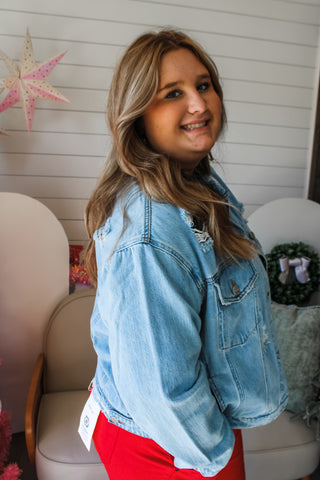 Denim Edge Distressed Jacket • Light Wash - PLUS