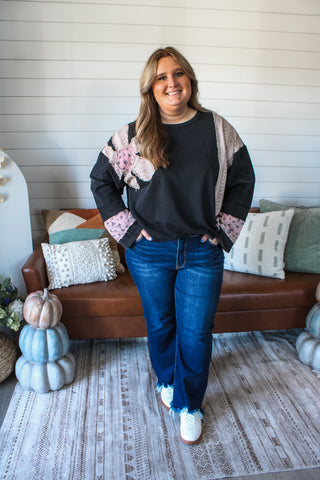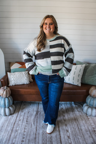 Mix It Up Striped Sweater • Charcoal/Sage - PLUS - FINAL SALE