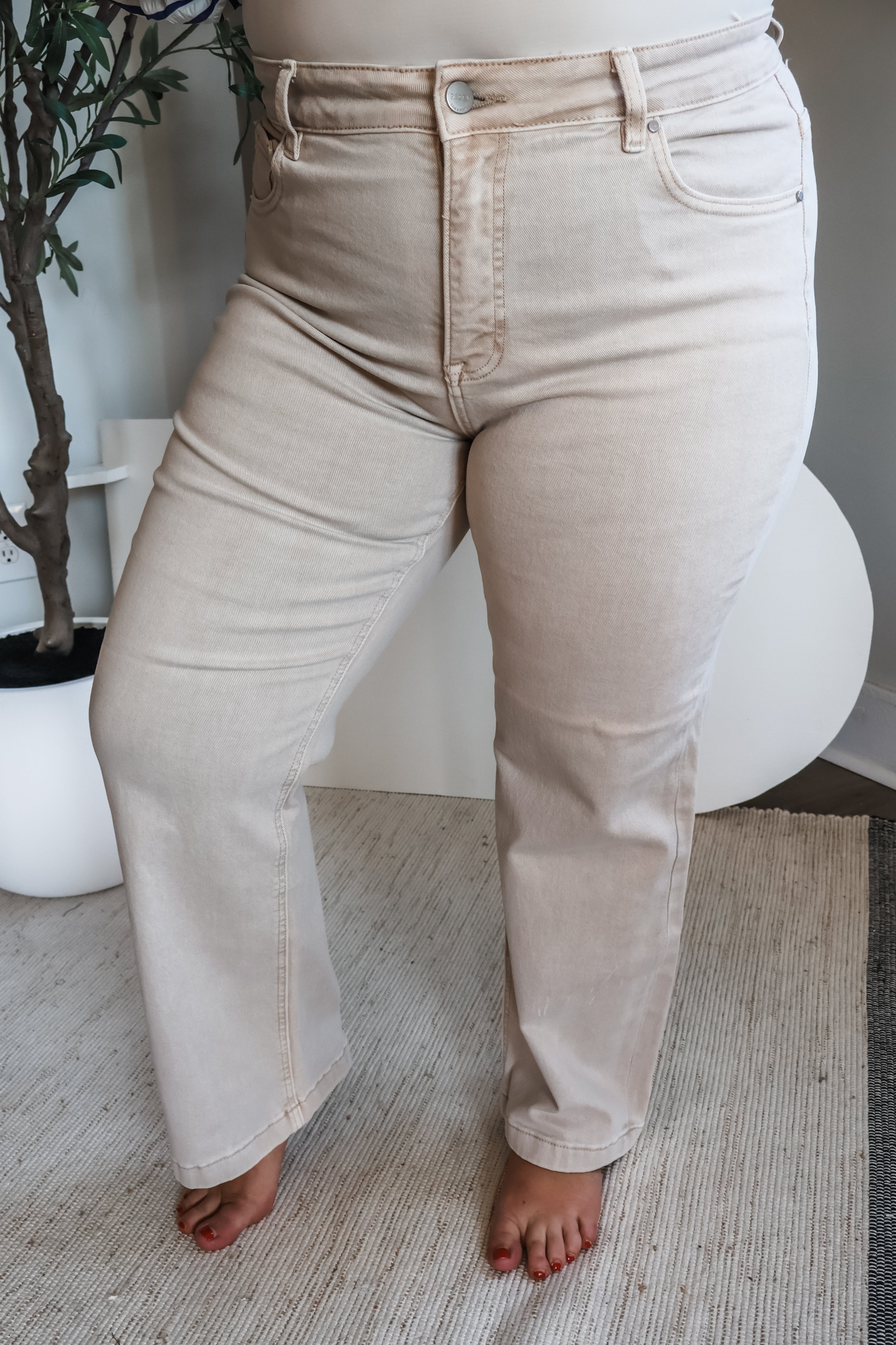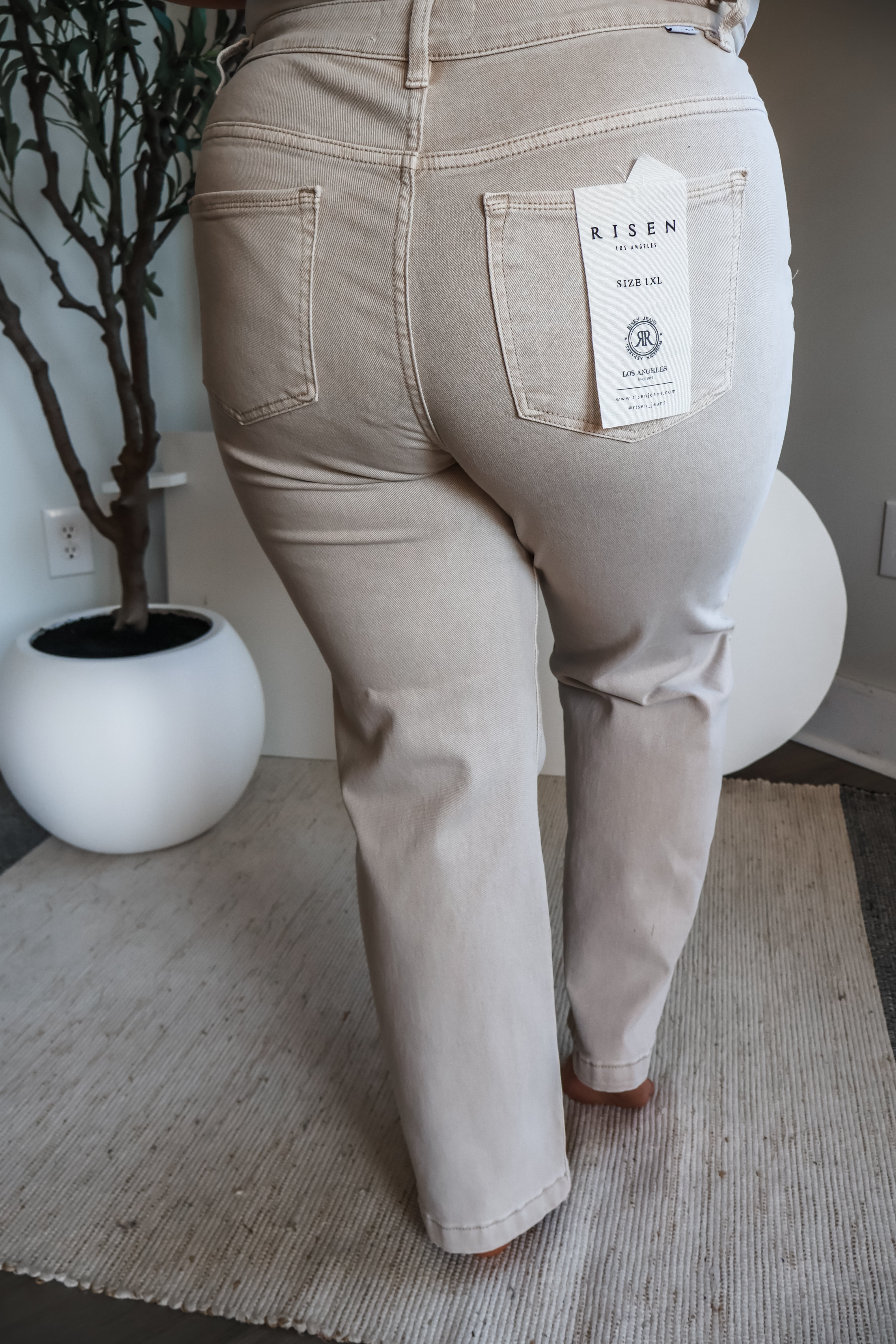Size + fit: Featuring a high rise fit with a 5-pocket design, finished hem, single button front and zip fly closure. 29.5” inseam, Risen. 98% Cotton, 2% Spandex. Model is 5’5” and wear 1X.