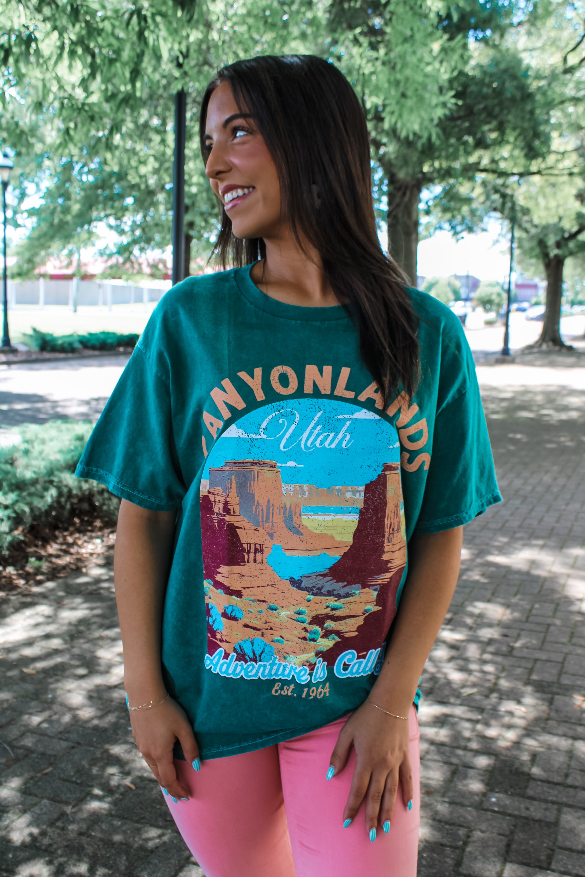 So cool and oversized, this fun graphic top will add a travel-inspired vibe to your summer style! Fabricated in mineral washed cotton knit with a modern oversized silhouette, classic crewneck and drop shoulder sleeves.
