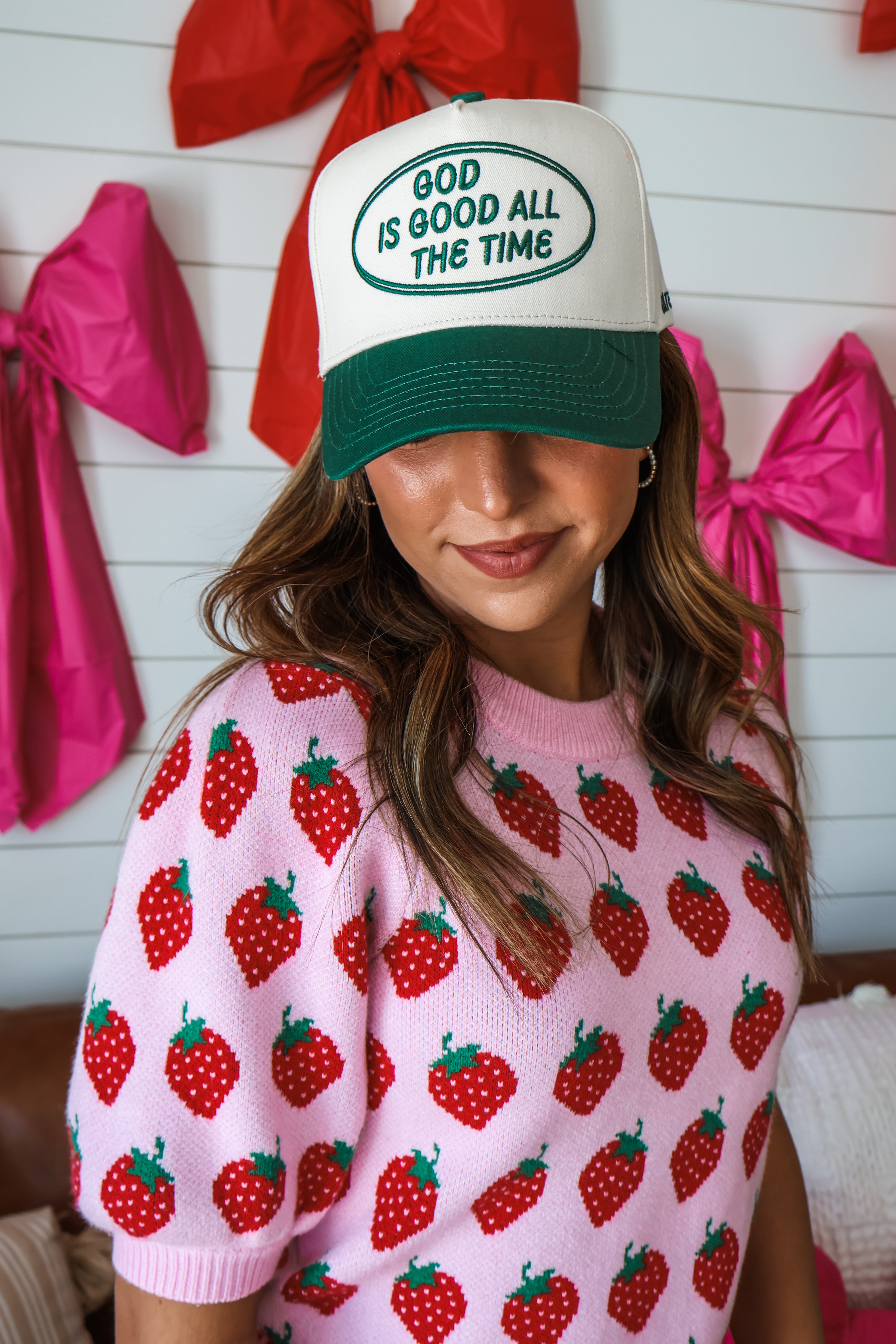 Add a dose of faith and fashion to any outfit with this cute trucker hat! With a fully embroidered design, contrast bill and an adjustable snap closure. One size. Materials may have natural variations. Colors may vary from different viewing devices and lighting.