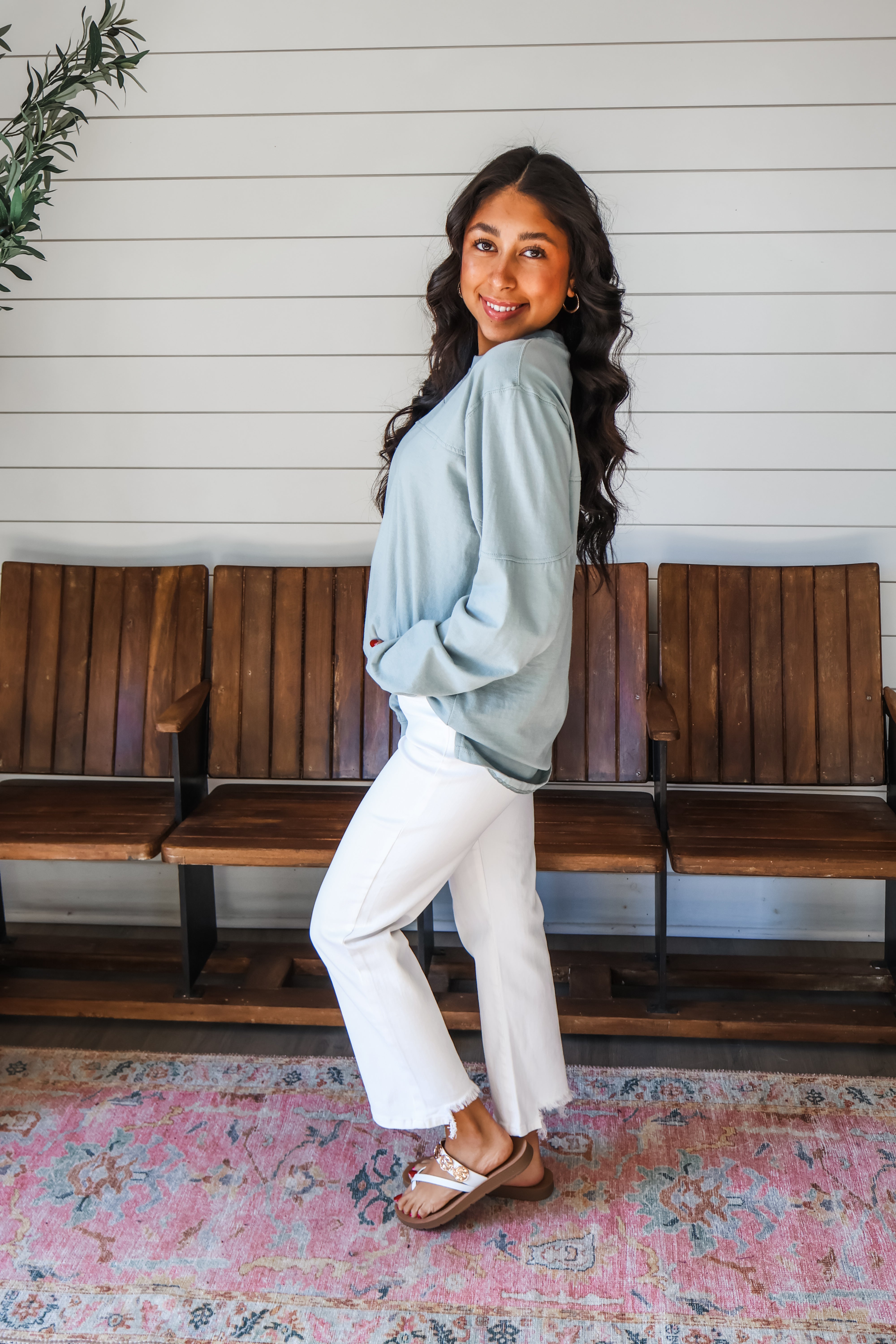 Size + fit: Loose fit for style. S 0-6, M 6-10, L 10-14. 100% Cotton. Model is 5’3” and wears a Small.