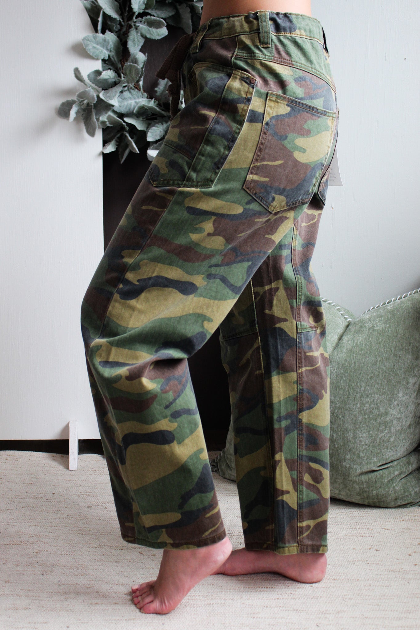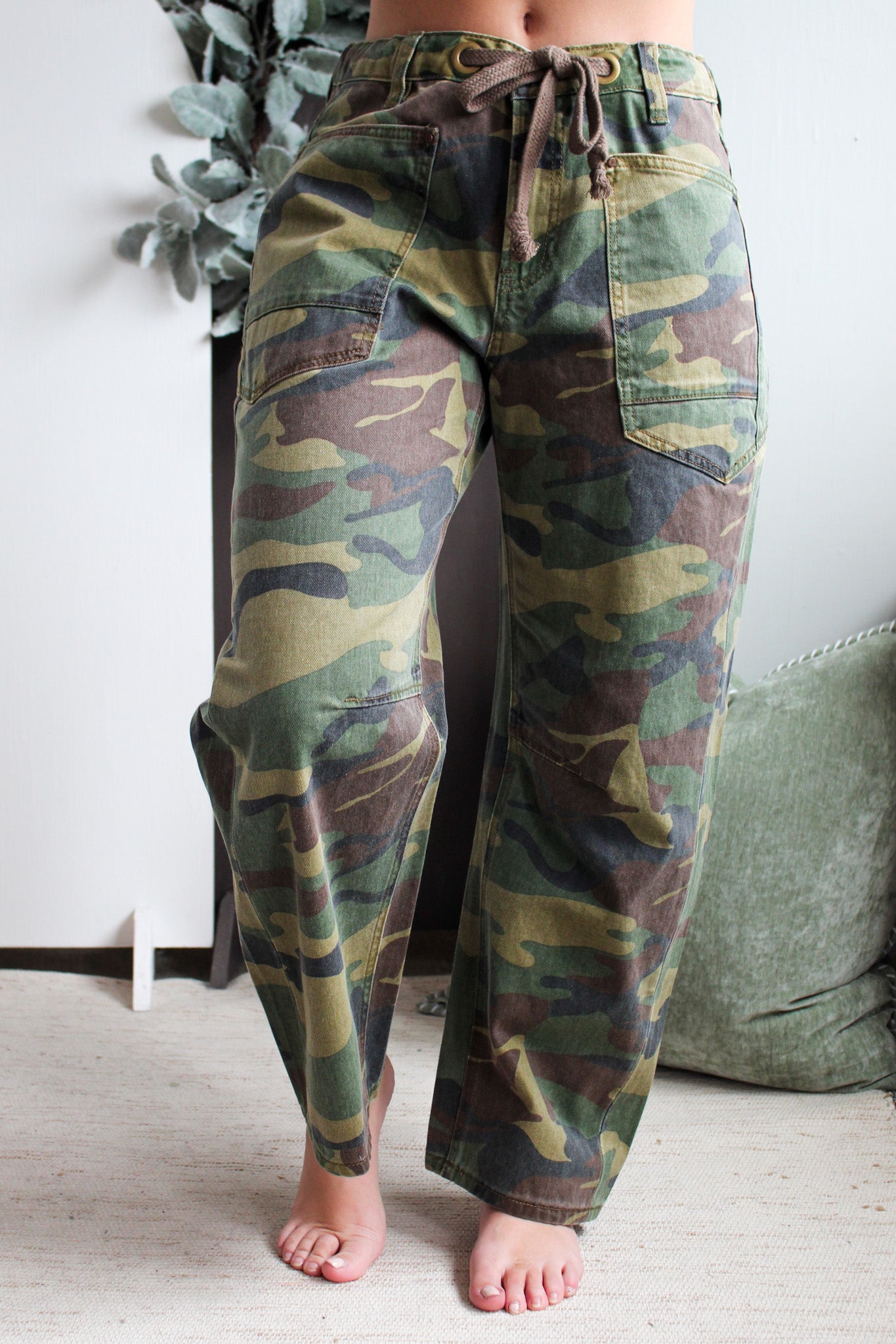 Edgy and eye-catching in a striking camo print, our Presley Jean will make a style statement wherever you go! This playful pair features a high rise fit with a stretch panel waist, 4-pocket design and a trendy barrel leg silhouette. With a high rise fit, 5-pocket design, single button front and zip fly closure. 26.5” inseam, Risen. 100% Cotton. Model is 5’5” and wears 03.