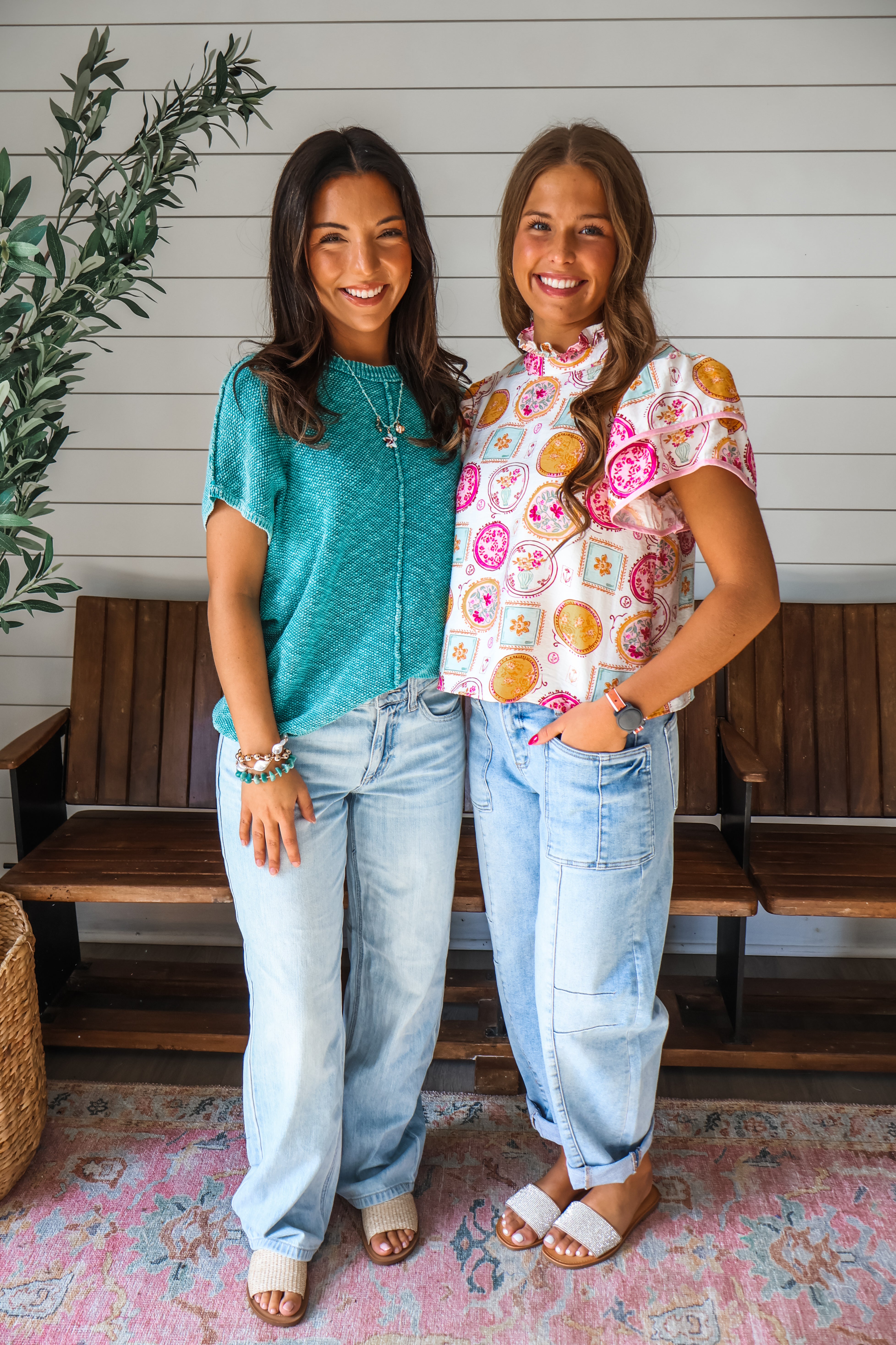 Soak up the sun with this eye-catching top! The mineral-washed textured knit and relaxed silhouette lend it a breezy feel that’s perfect for sunny days and coastal getaways! Featuring exposed seaming details for added interest and texture, a classic crewneck and rolled edge hem.