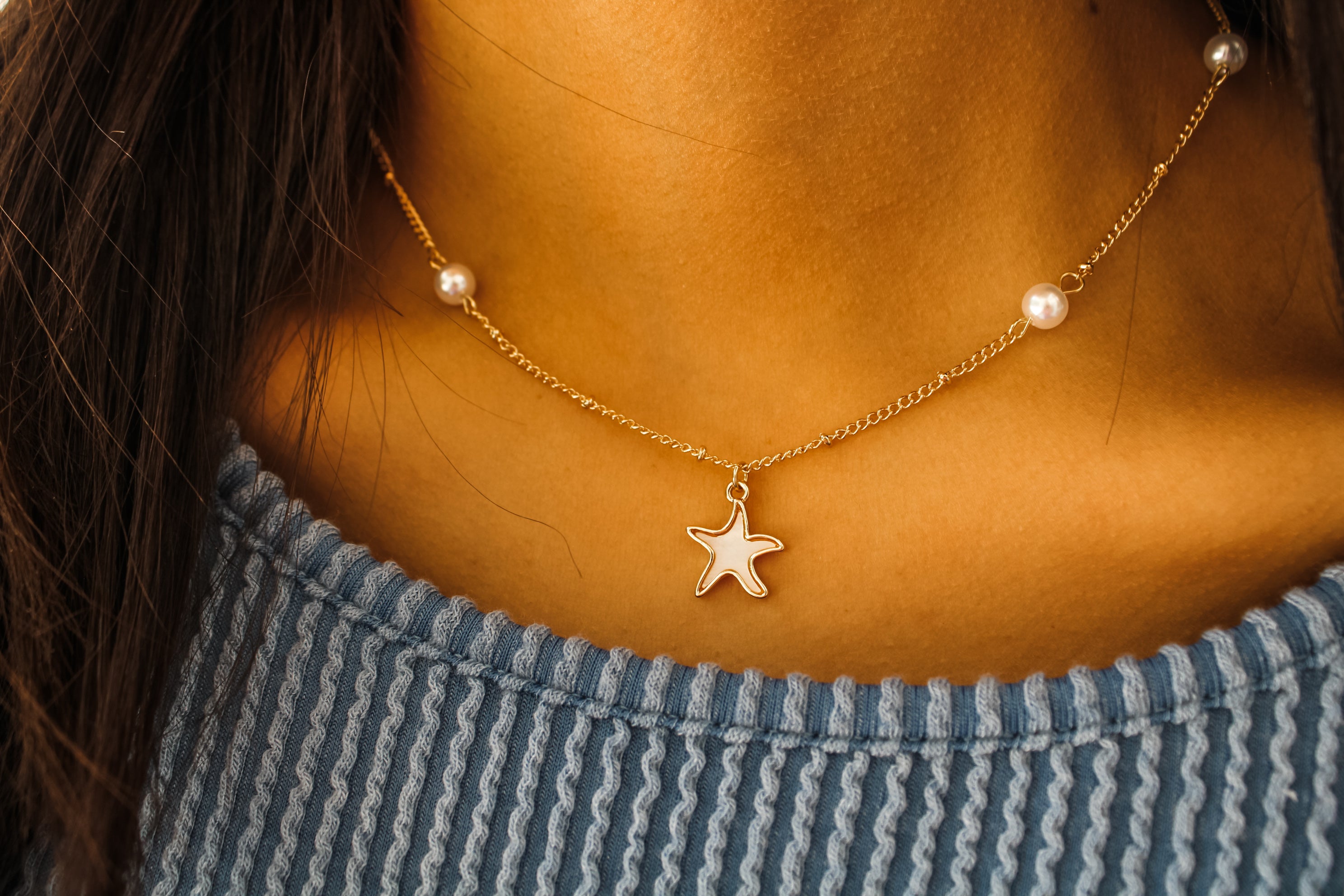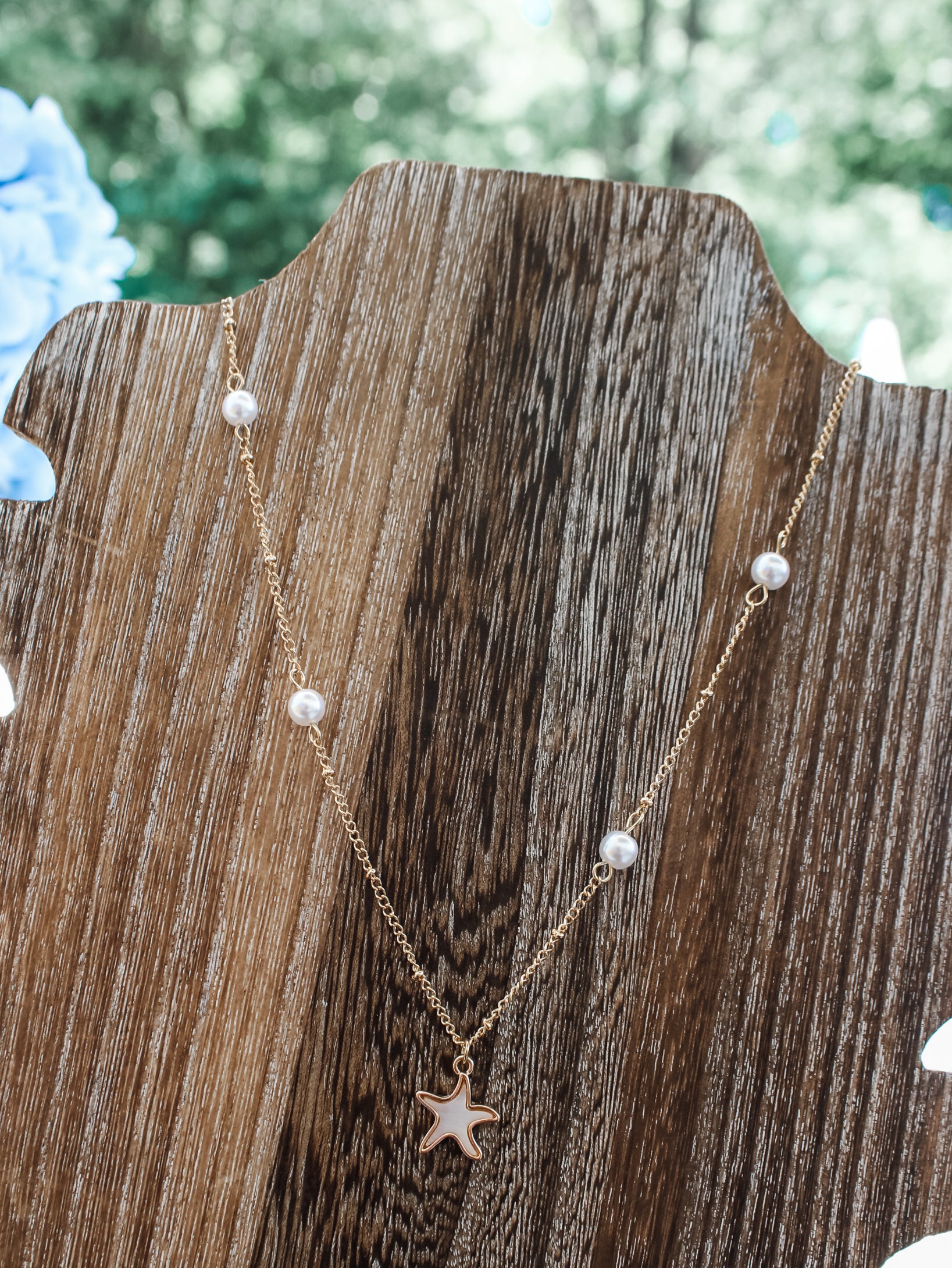 Add a coastal chic touch to your summer looks! This necklace features pearl bead accents and a starfish pendant with a Mother-of-Pearl inlay. Materials may have natural variations. Colors may vary from different viewing devices and lighting. Final sale item.