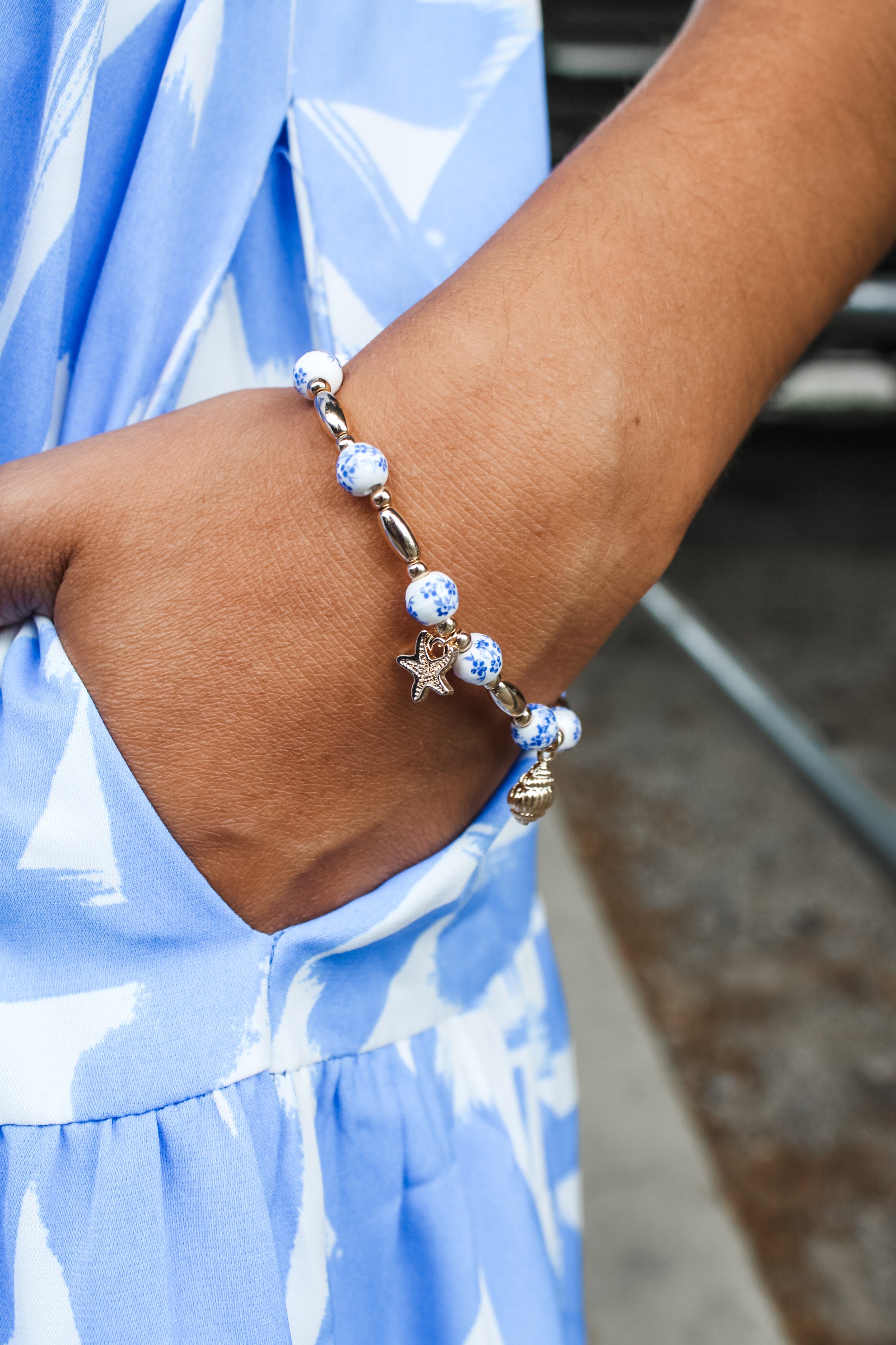 Featuring painted beads with gold charms, this bracelet will add a coastal chic touch to any look. Materials may have natural variations. Colors may vary from different viewing devices and lighting. Final sale item.