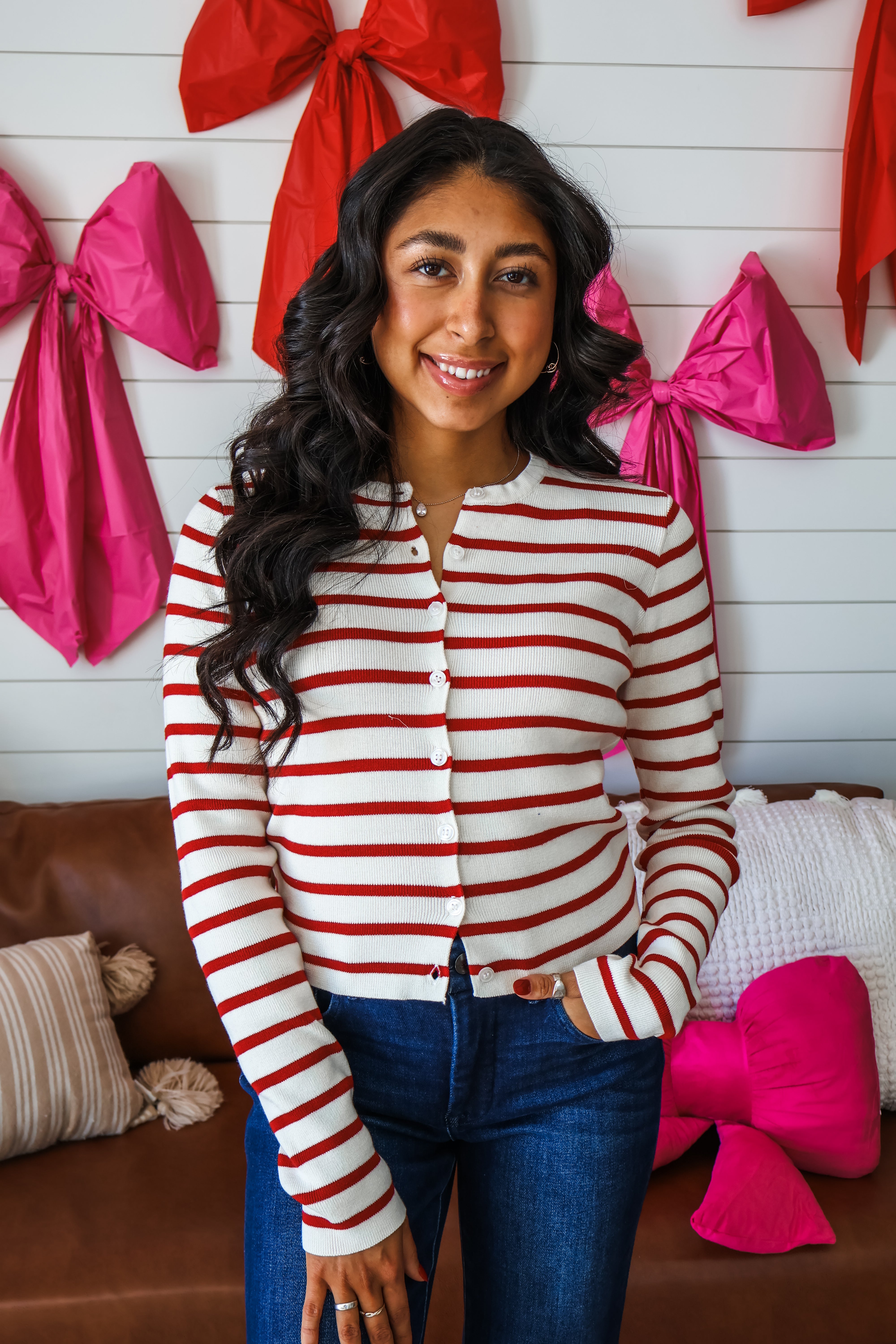 Sweet layering essentials for a cute spring style! Crafted from a soft ribbed knit, this button front cardigan is a versatile layering piece you can dress up or down season after season. Featured in a simple crewneck silhouette with a slightly cropped length and finished hem.