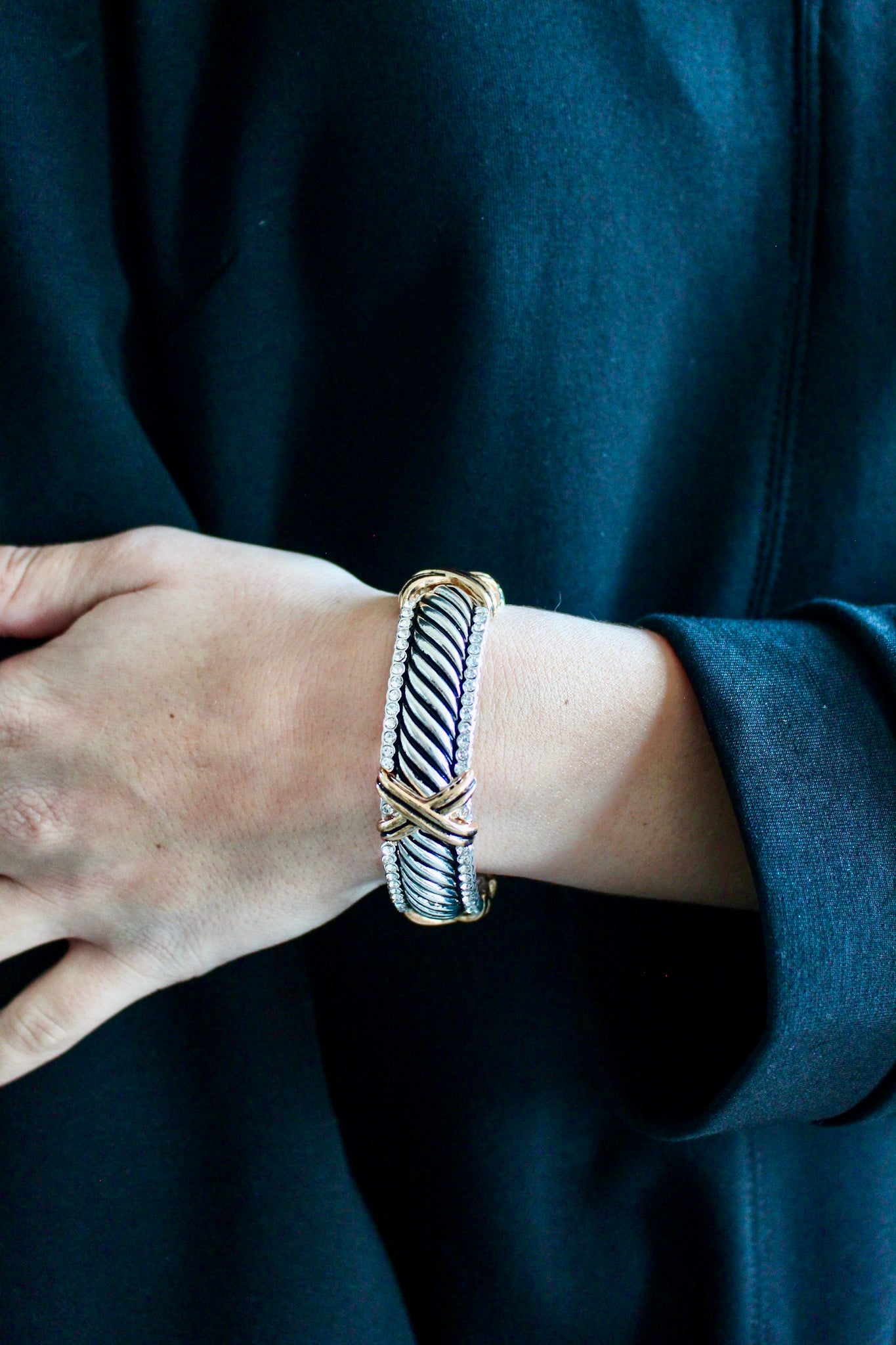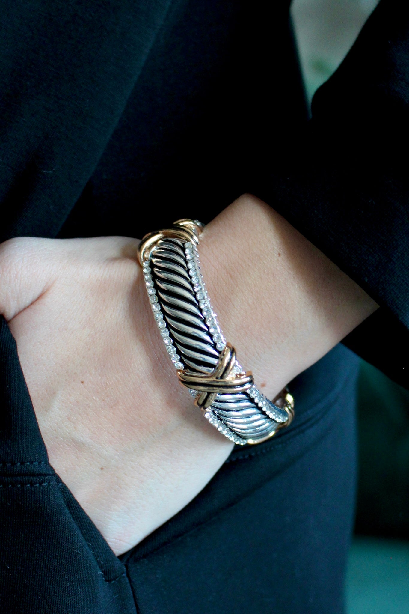 Elevate your holiday looks with polish and shine. Mixed metal stretch bracelet with rhinestone accents. Materials may have natural variations. Colors may vary from different viewing devices and lighting. Final sale item.