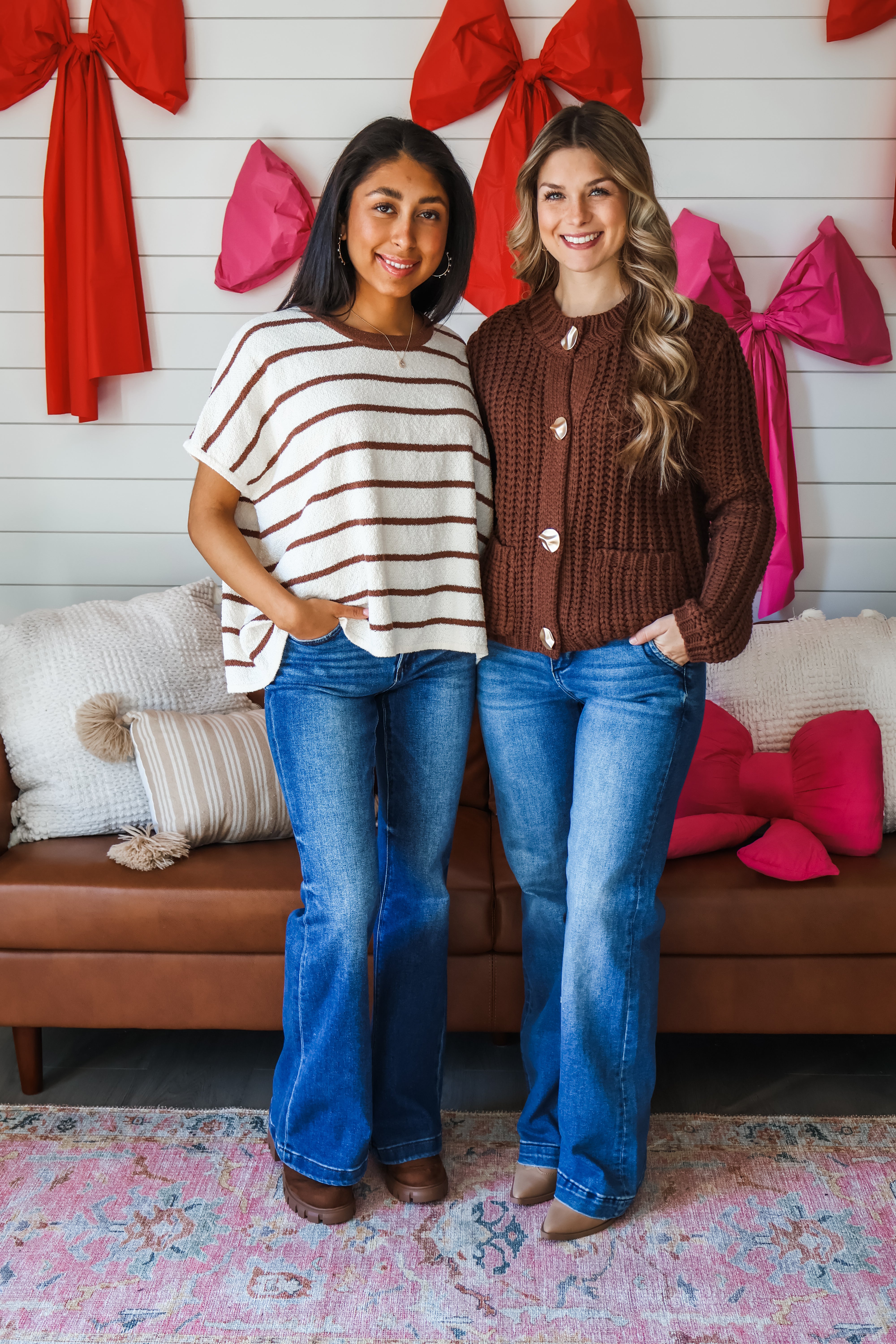 Cozy up in a chunky cardigan sweater! Fabricated in a soft and plush braided knit, this chic must-have will add a layer of texture and warmth to any outfit! Featuring double pockets, sculptural gold buttons, and a relaxed fit that’s made for layering.
