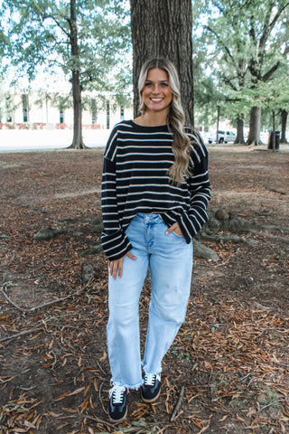 Bright Side Speckled Sweater • Blue Stripe - FINAL SALE