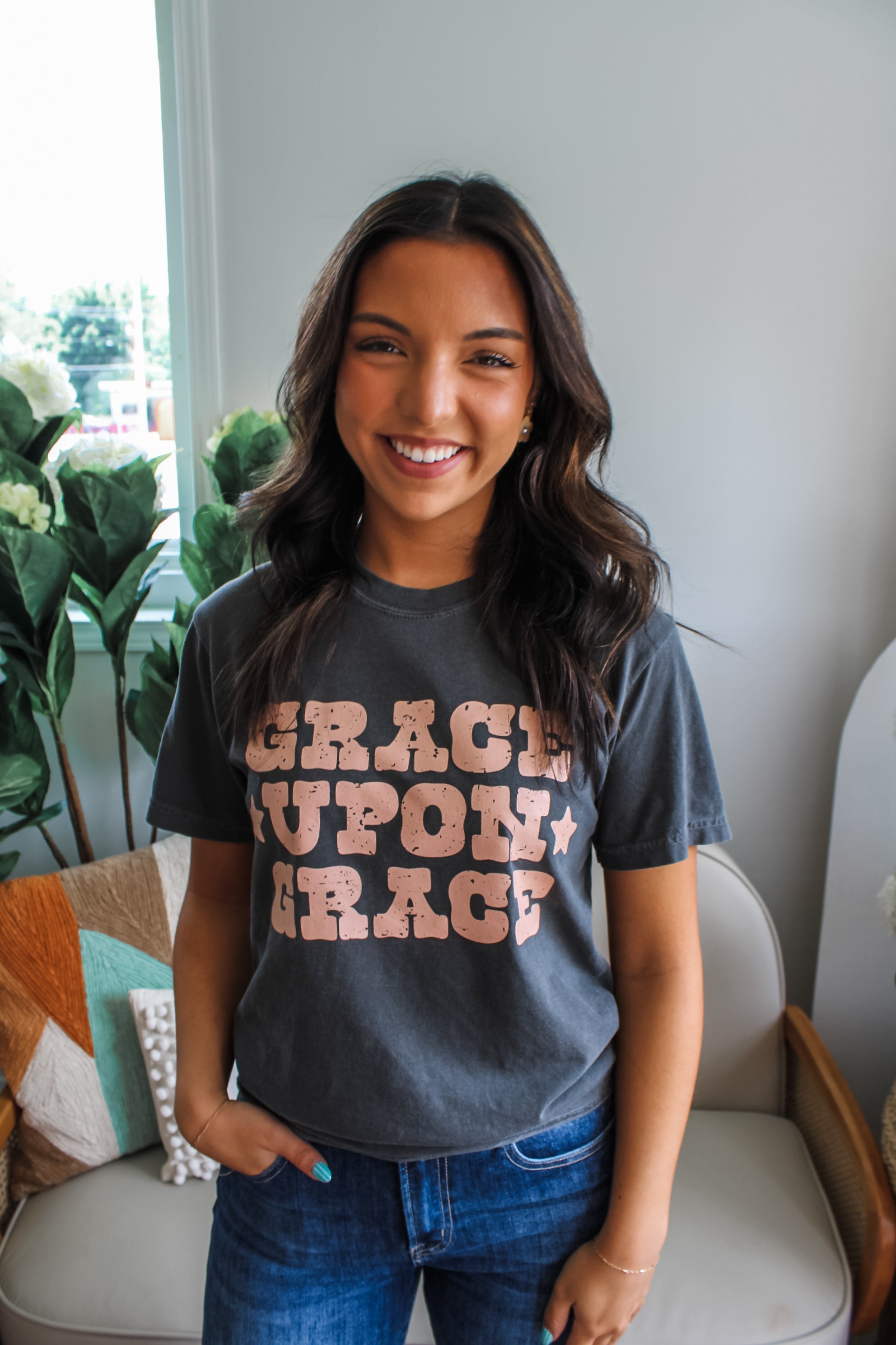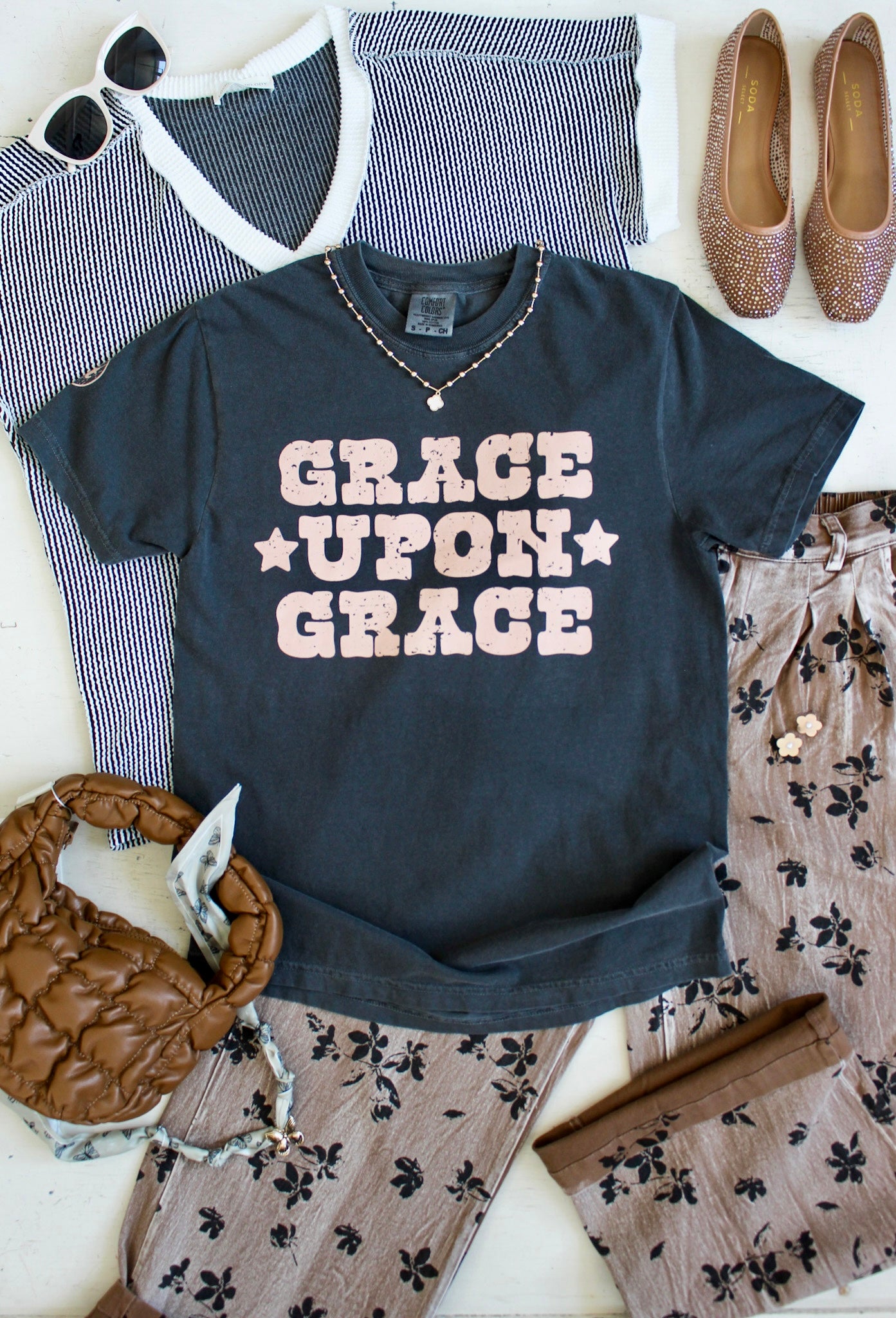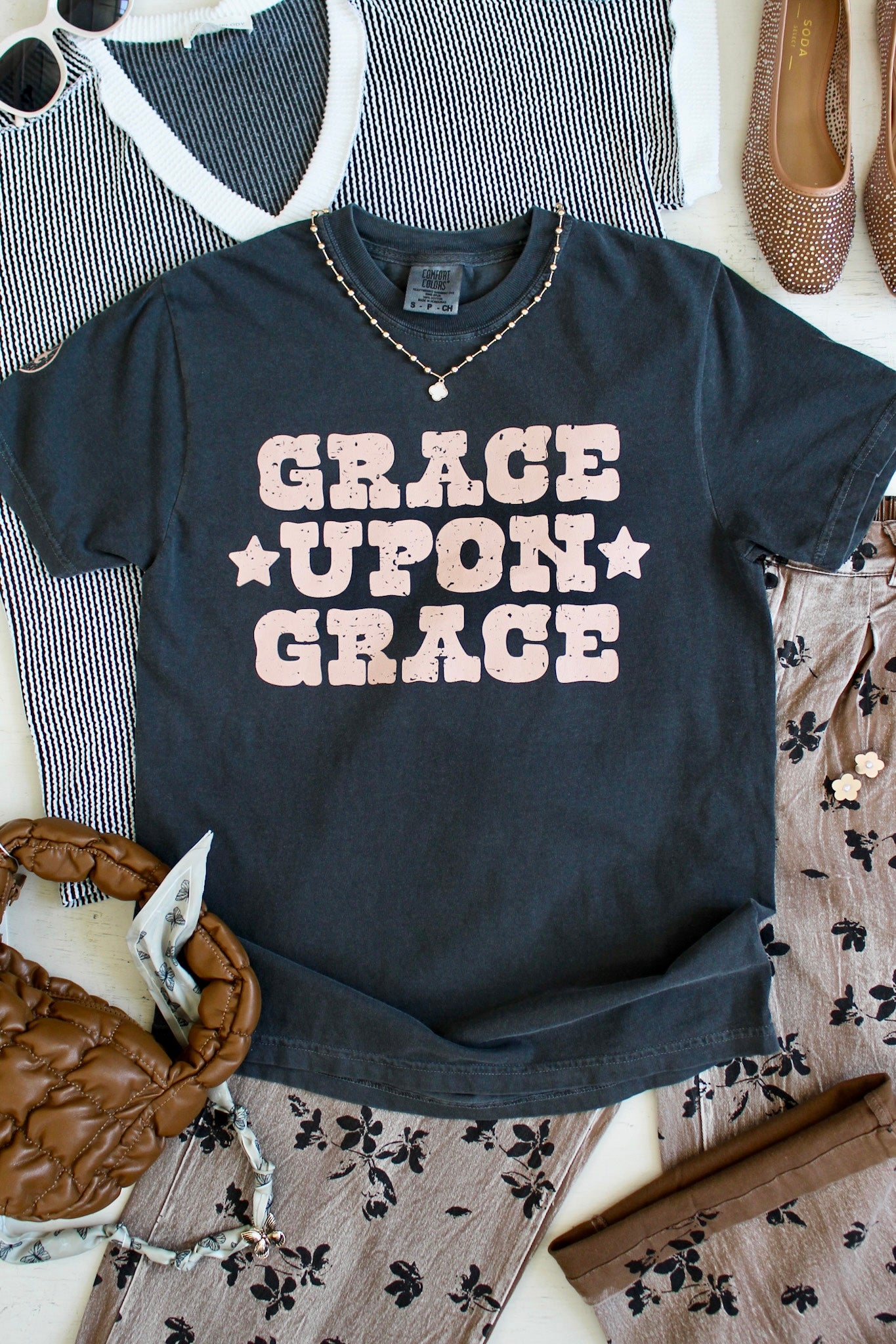 Our exclusive collection of Faith-based graphic tees will keep you in style whether you’re strolling around town, spending time with the family or enjoying a summer getaway! Worn on its own or layered under overalls and cardigans, it’s a cute look that adds print and personality to your everyday style. This short sleeve look features a ribbed band crewneck in a heavyweight garment-dyed ring spun cotton for a soft vintage feel.