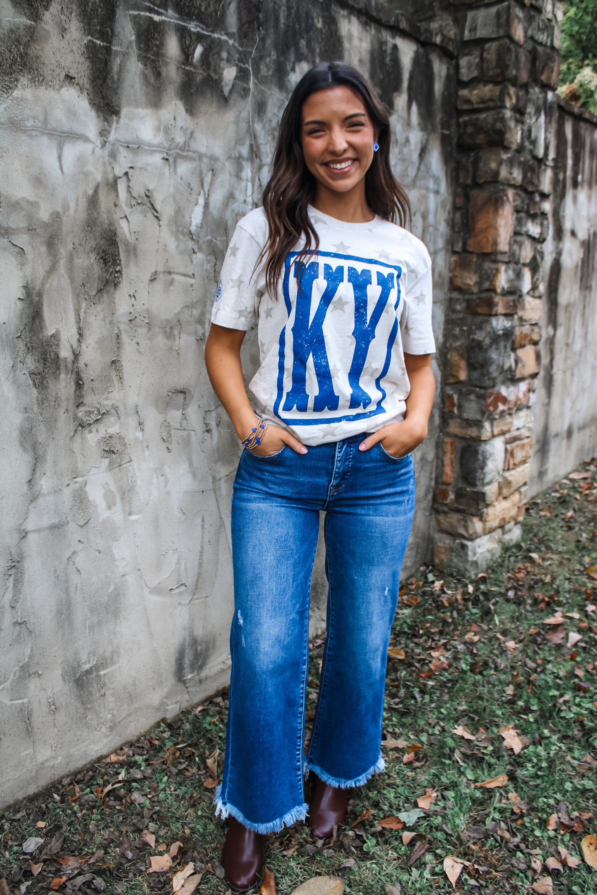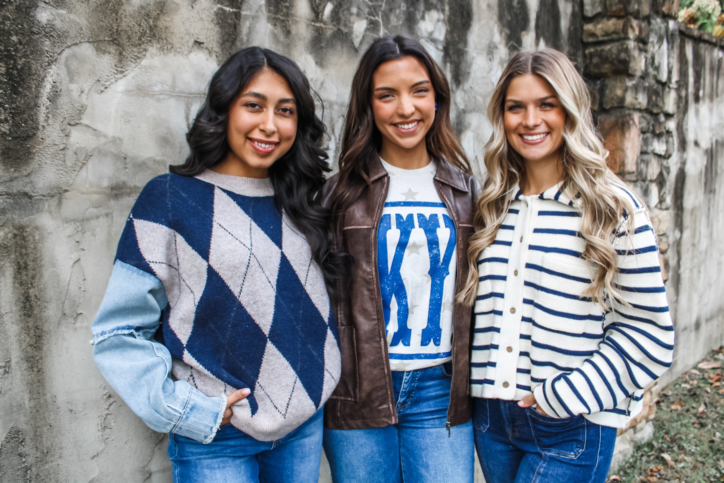 Have a Merry Kentucky Christmas! Celebrate the season with our exclusive collection of the cutest graphic tees! Worn on its own, layered under plaid shirts and chunky cardigans, it’s a playful look that adds print and personality to your holiday wardrobe. With a classic crewneck and relaxed fit in a star print knit for an eye-catching look.