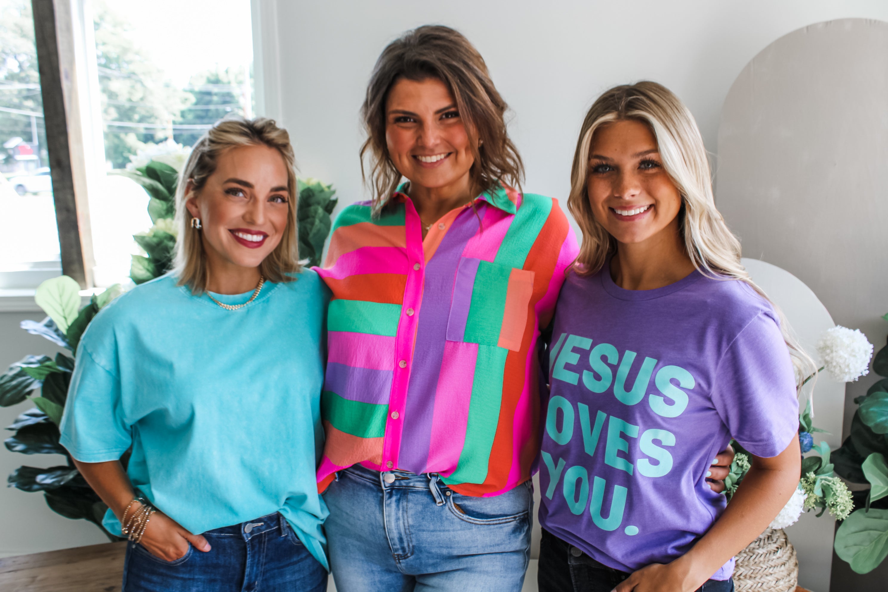 Add a dose of faith and fashion to your summer style with our exclusive collection of the cutest graphic tees! Worn on its own or layered under overalls and denim jackets, it’s a playful look that adds print and personality to your everyday style. With a classic crewneck and relaxed fit in a soft, cotton-blend knit.