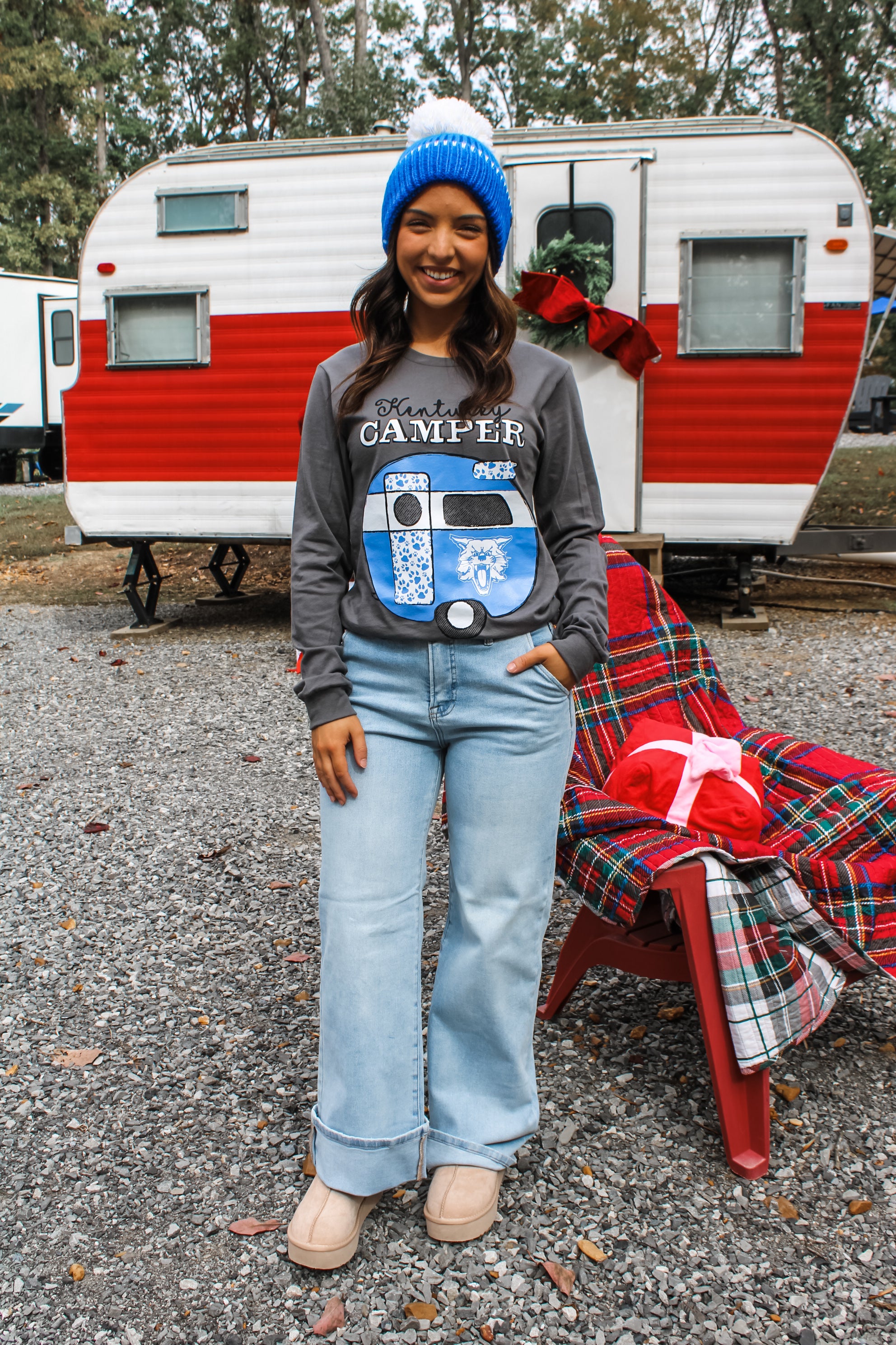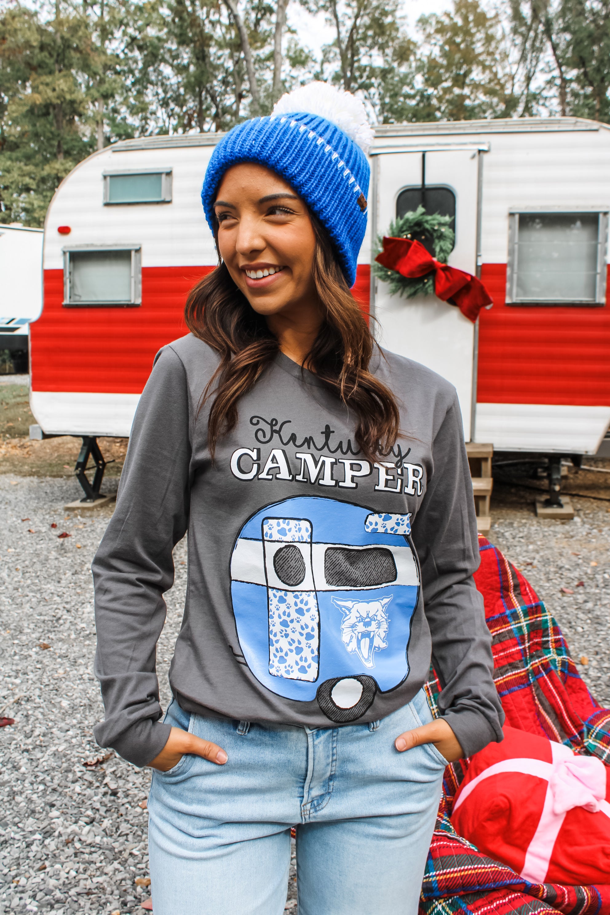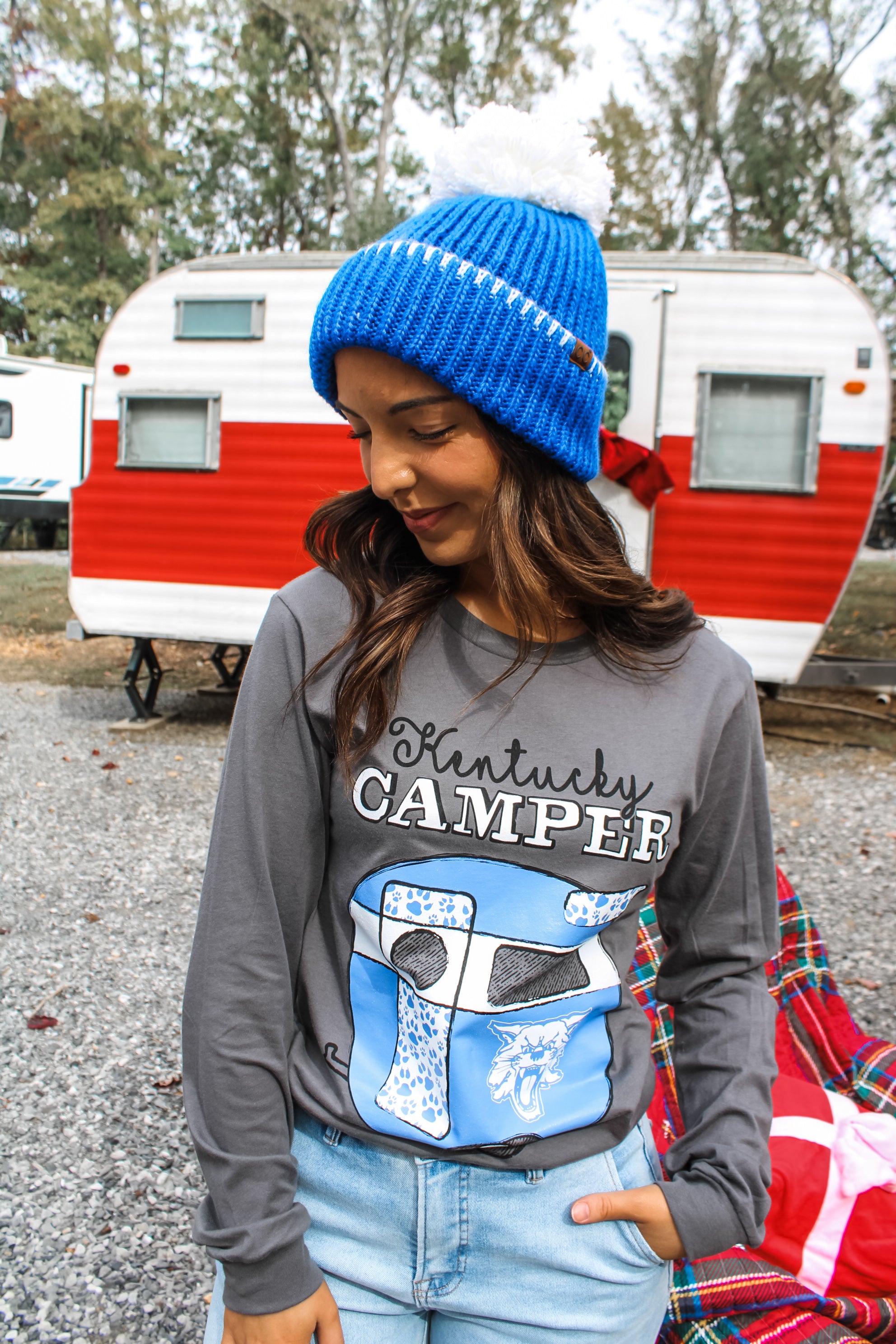 Have a Kentucky Camper Christmas! Celebrate the season in style with our exclusive collection of the cutest graphic tees! Worn on its own, layered under plaid shirts and chunky cardigans, it’s a playful look that adds print and personality to your holiday wardrobeThis long sleeve top features a classic crewneck and relaxed fit in a soft, pre-shrunk cotton knit.