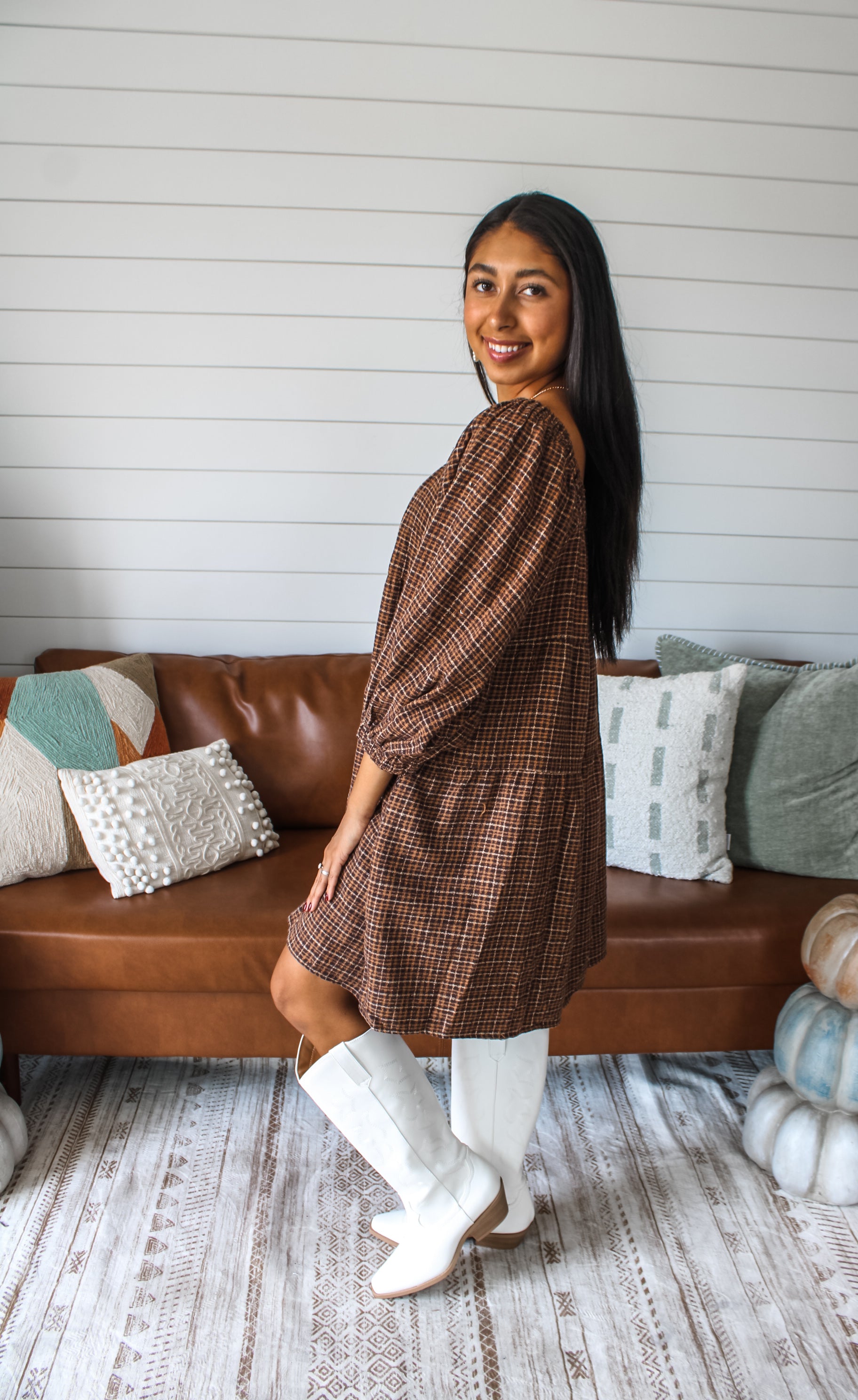 Its plaid season and this pocket dress is an effortless look you can dress up or down for any day of the week. Crafted from a soft flannel fabrication with a breezy ruffle silhouette for a look that’s flattering and comfortable. Featuring a square neckline, billowy balloon sleeves and oh-so-essential side pockets.