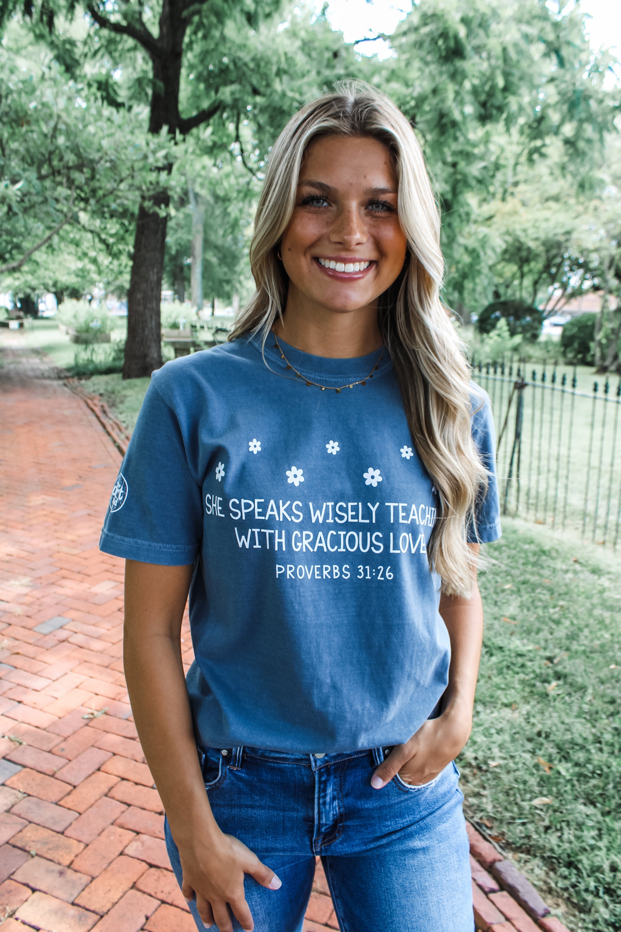 She Speaks Wisely Graphic Tee • Dusty Navy