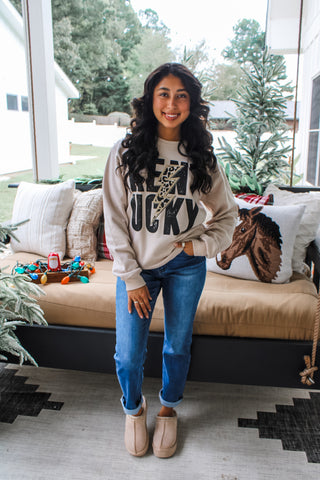 Leopard Lightning Kentucky Graphic Sweatshirt • Latte