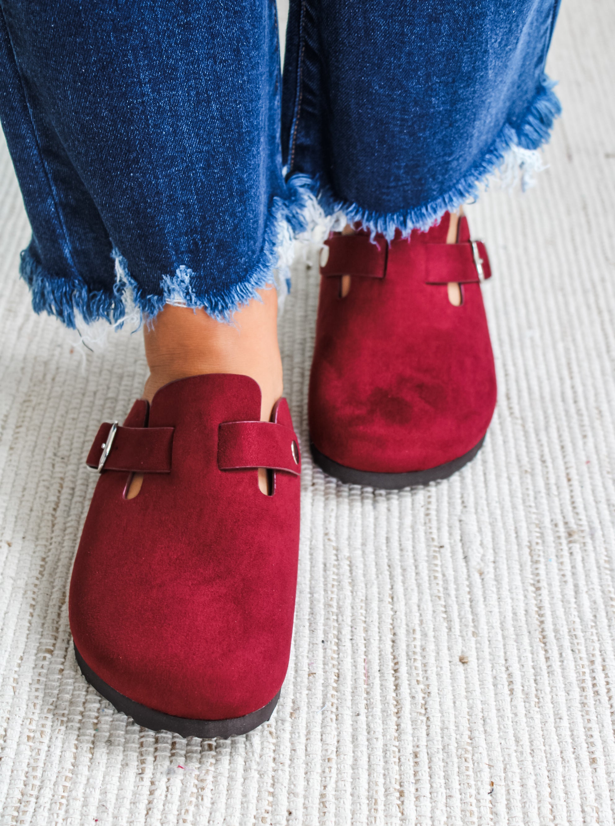 Our Rowan Clog is a laid-back look you can wear with everything. This comfy chic pair is a veritable classic that can easily be worn all year round. Featuring a classic shape with a soft faux suede upper. With an adjustable buckle strap and padded cork footbed for all day comfort.