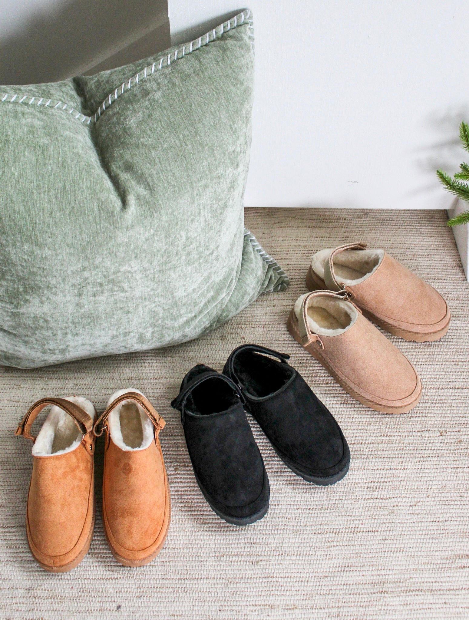 Stay comfy and cozy in style! This cute pair is an updated staple you’ll keep wearing all season long! Featuring a classic shape with a beautiful faux suede upper and plush faux fur lining. With an adjustable velcro strap closure for a custom fit and a padded 1” platform sole for all day comfort.