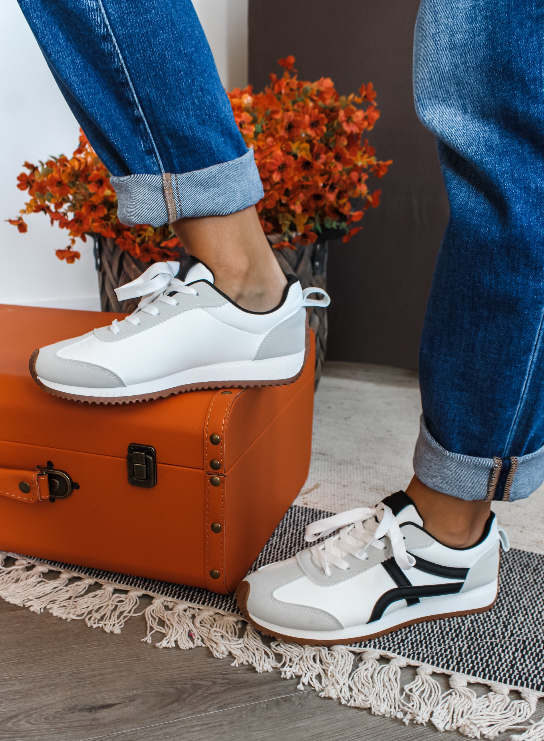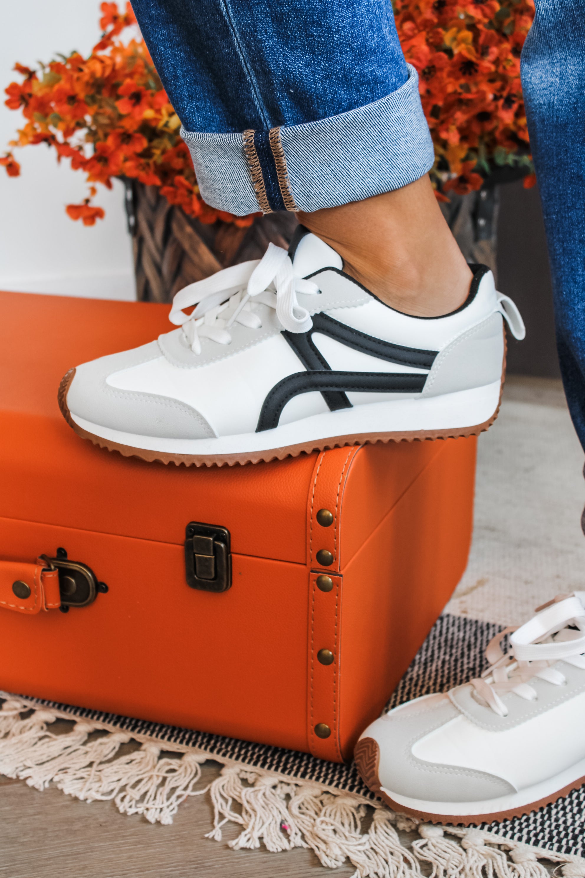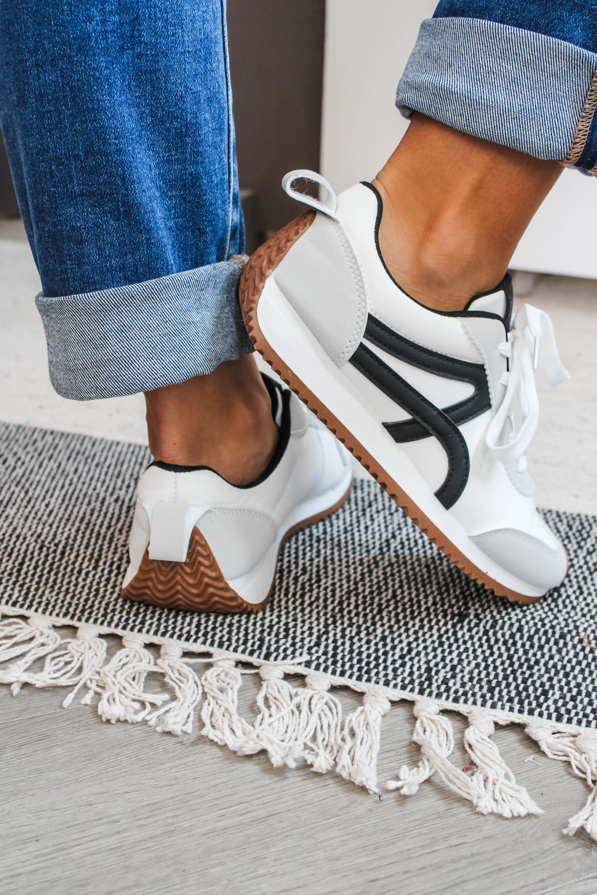 Designed for both style and function, our Winning Streak Sneaker add an eye-catching edge to any outfit! Featured in a sleek silhouette and neutral color block style with a rubber sole and gold accent design. Switch out with different colored laces for a one-of-a-kind style. This modern take on the low top sneaker is a trendy must-have for any closet!
