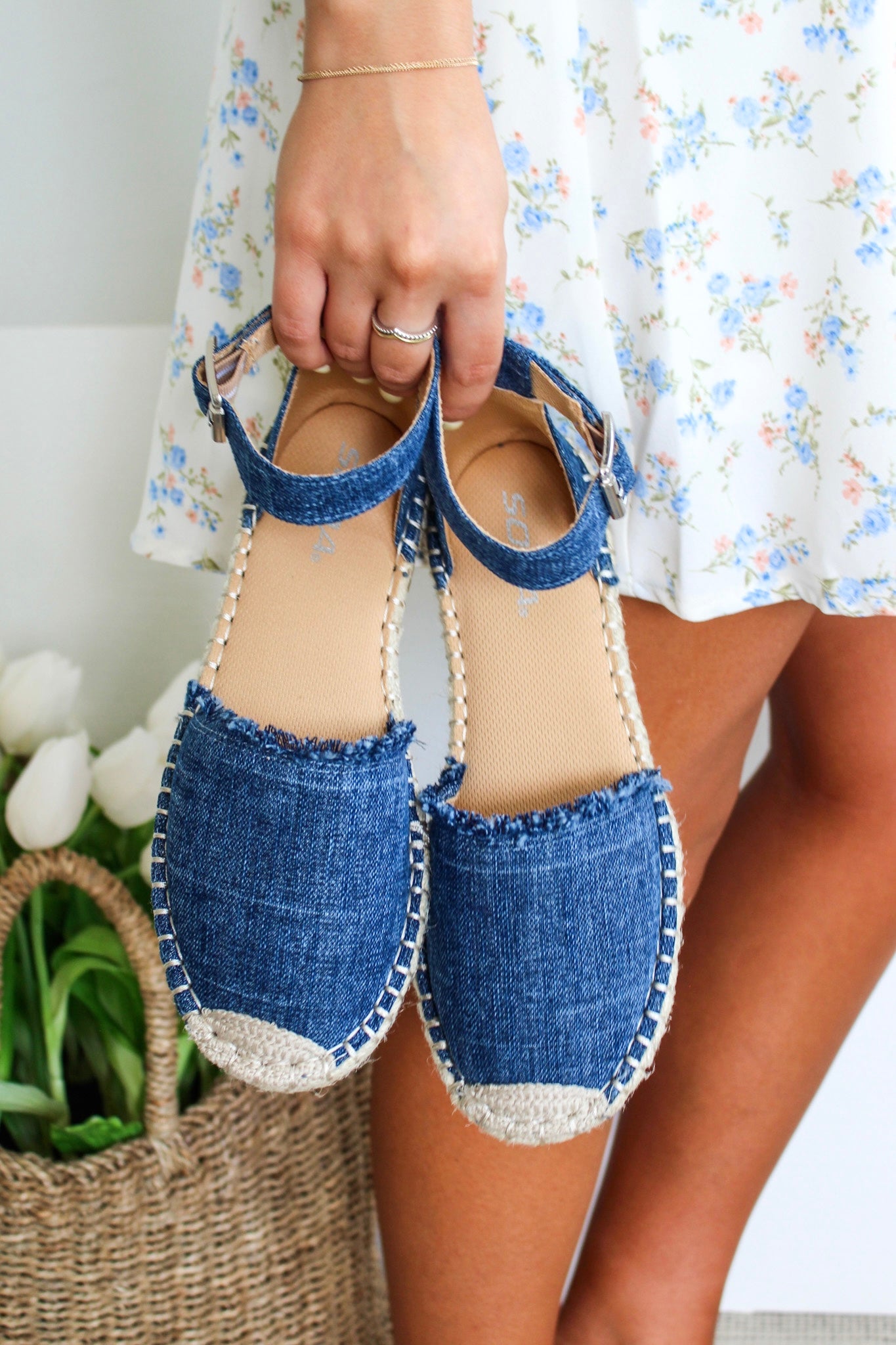 A chic style classic, our Venice Espadrille Sandal comes in a super chic denim canvas upper. This pair features an adjustable ankle strap closure, rounded toe and non-slip rubber outsole.