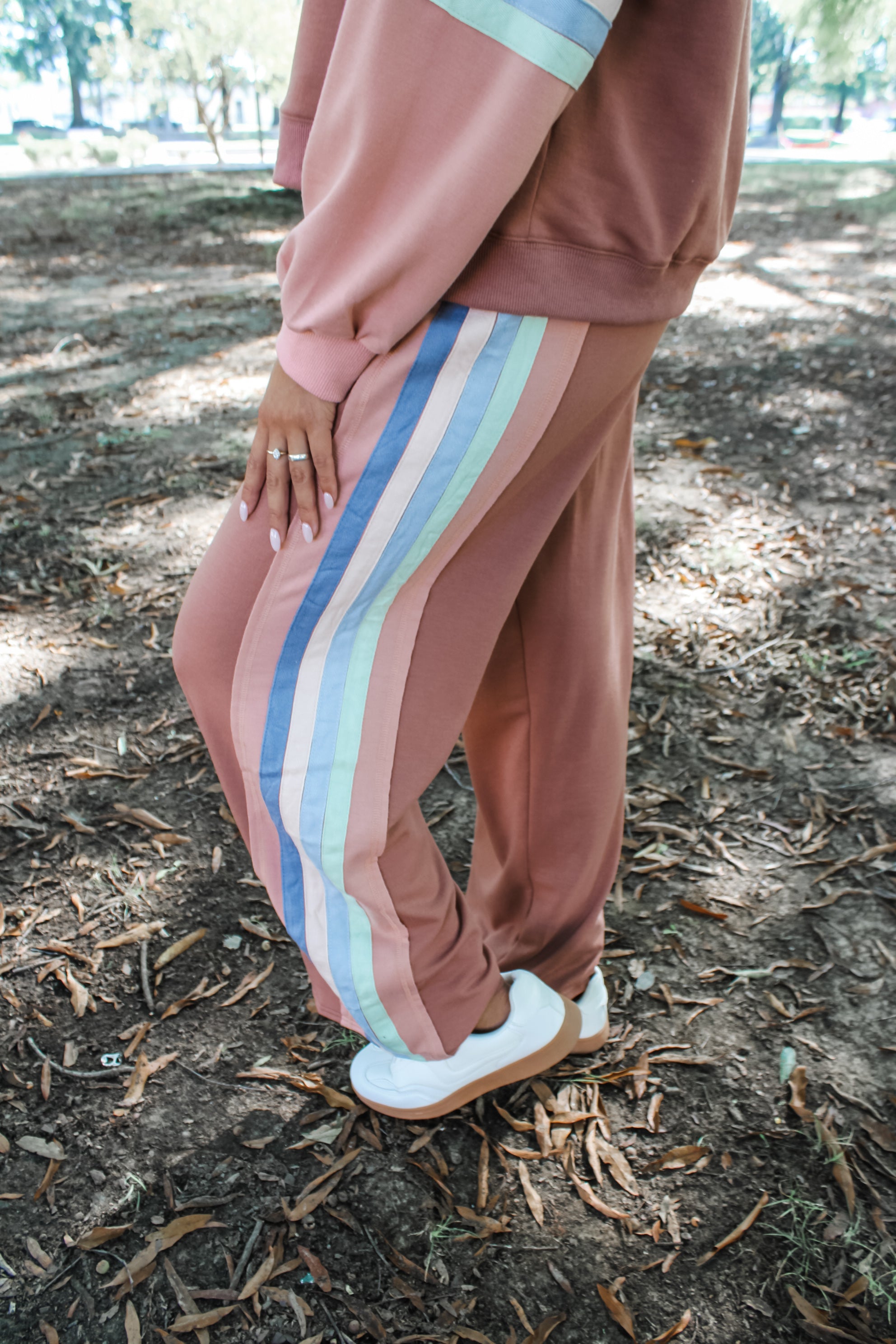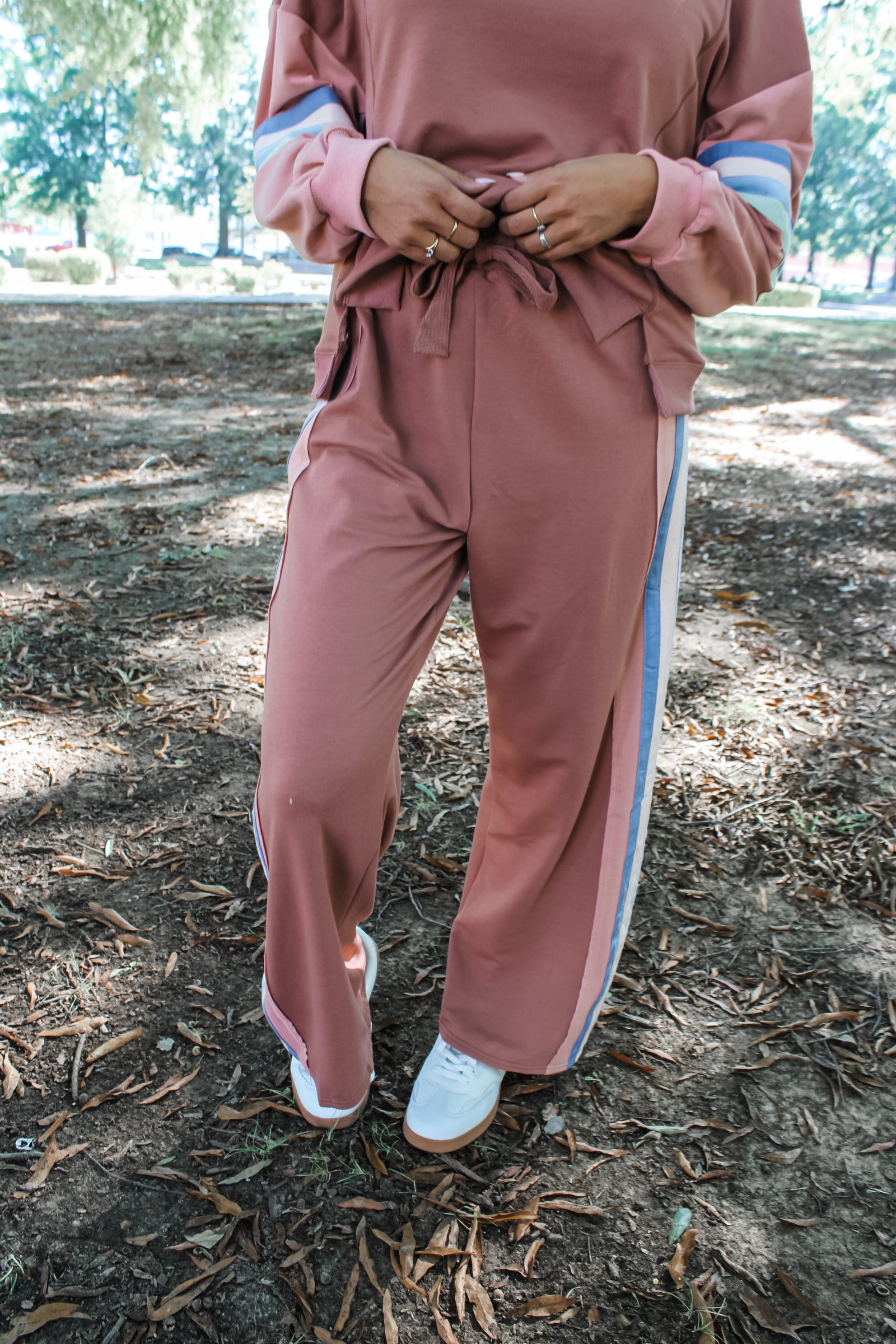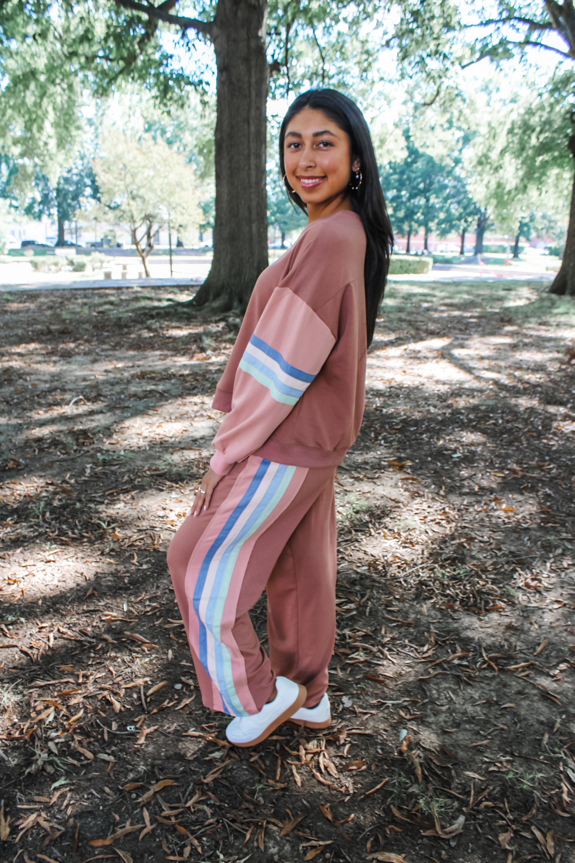 Fall moves forward with the athleisure chic trend! Paired to perfection, this pant set can be dressed up or kept sporty depending on how you style it. The soft cozy knit provides a layer of warmth without the bulk, and the color tape detailing gives it that vintage sportswear vibe. The crewneck top comes in a loose dolman silhouette with rib finishing and a stepped hem, and the pants feature a stretch drawstring waist and relaxed straight leg silhouette. This cool and comfy look is an effortless staple for lounging at home, casual coffee dates, or going on weekend getaways.