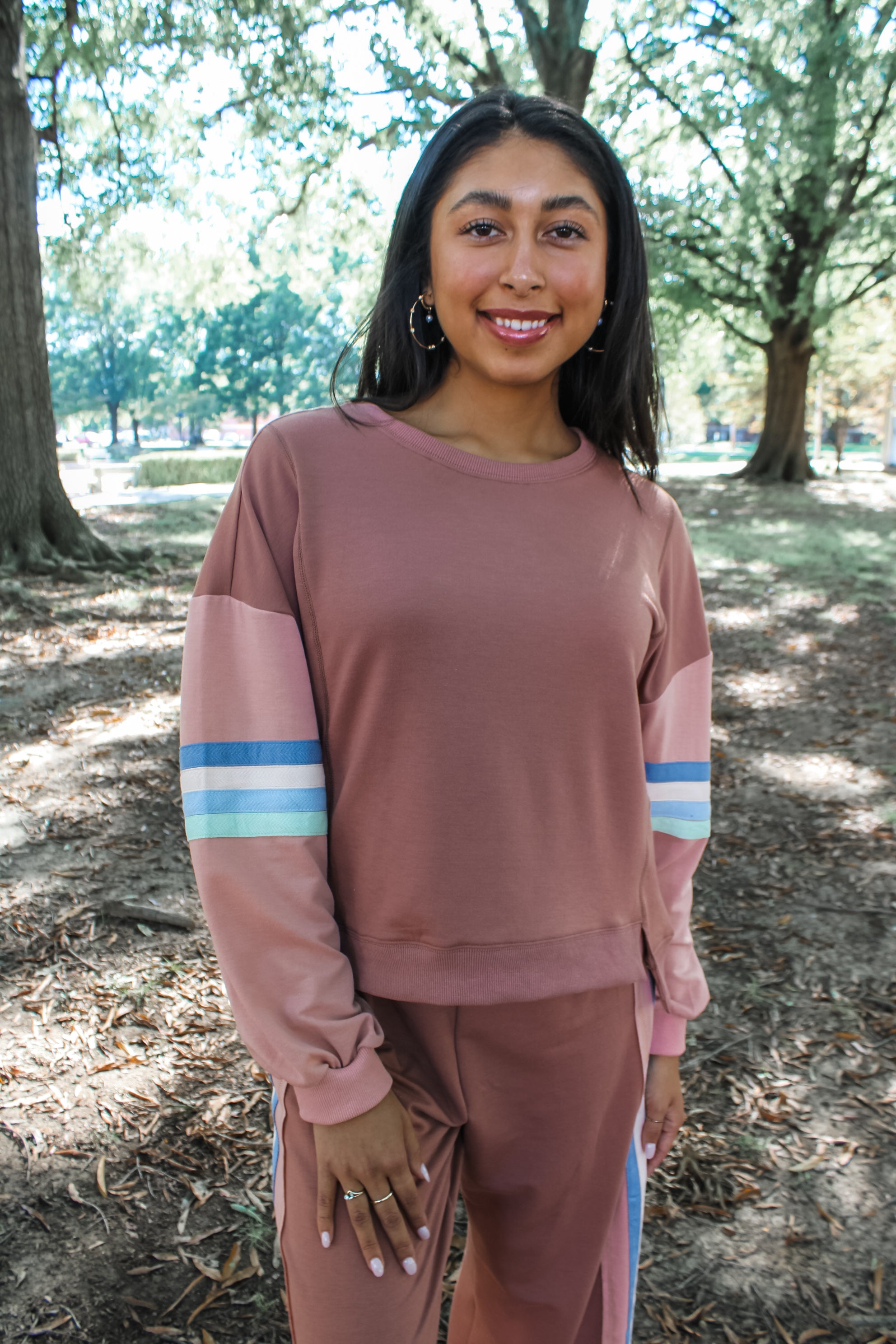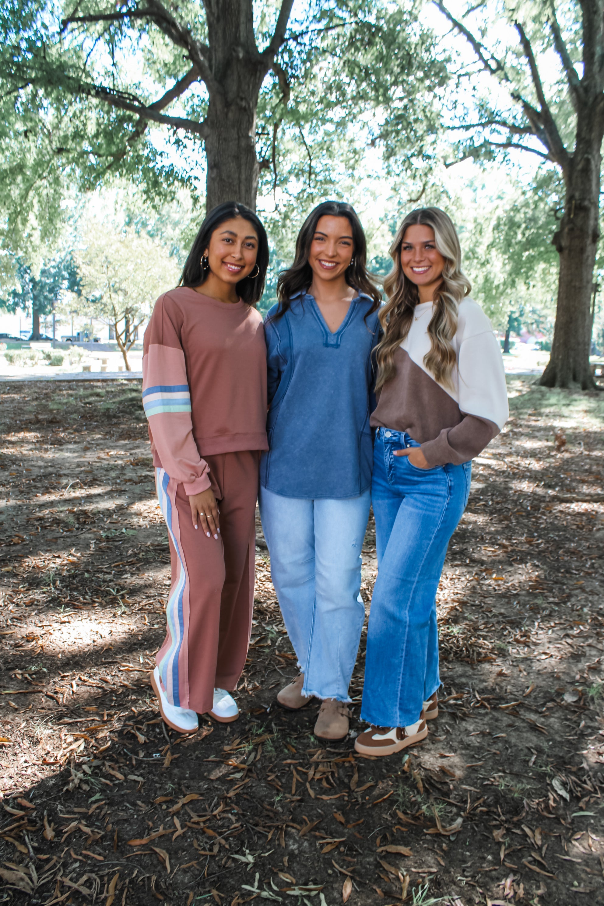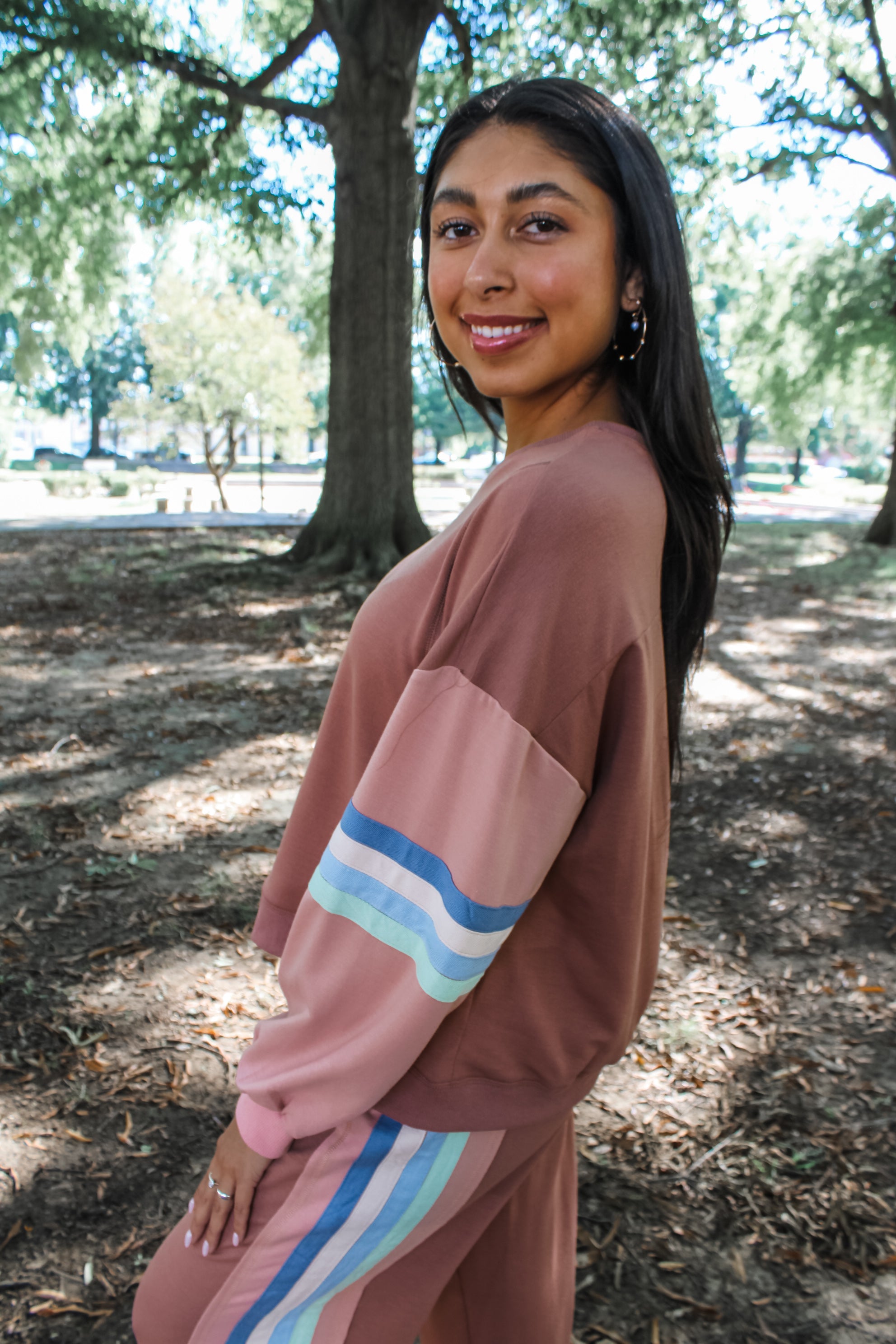 Fall moves forward with the athleisure chic trend! Paired to perfection, this pant set can be dressed up or kept sporty depending on how you style it. The soft cozy knit provides a layer of warmth without the bulk, and the color tape detailing gives it that vintage sportswear vibe. The crewneck top comes in a loose dolman silhouette with rib finishing and a stepped hem, and the pants feature a stretch drawstring waist and relaxed straight leg silhouette. This cool and comfy look is an effortless staple for lounging at home, casual coffee dates, or going on weekend getaways.