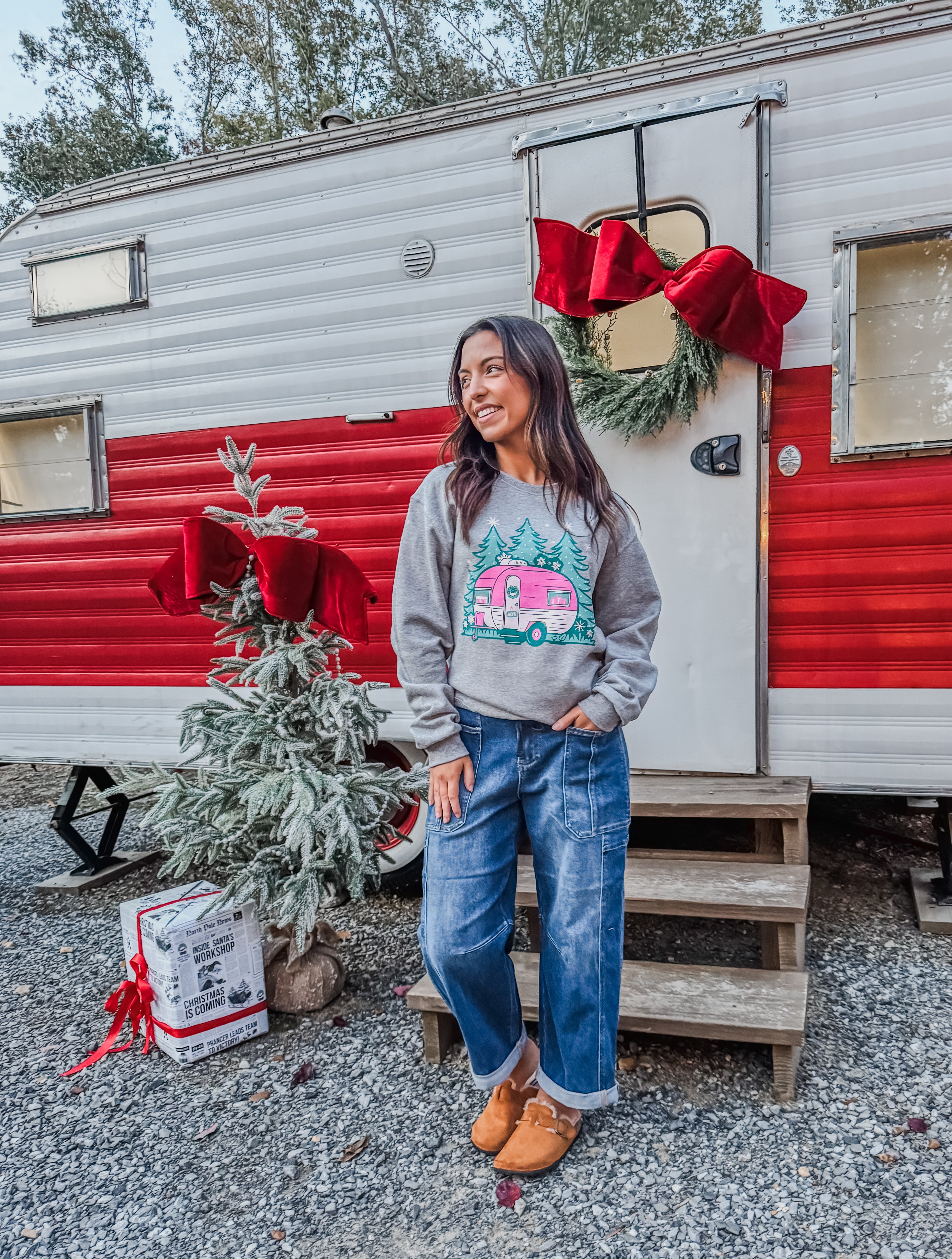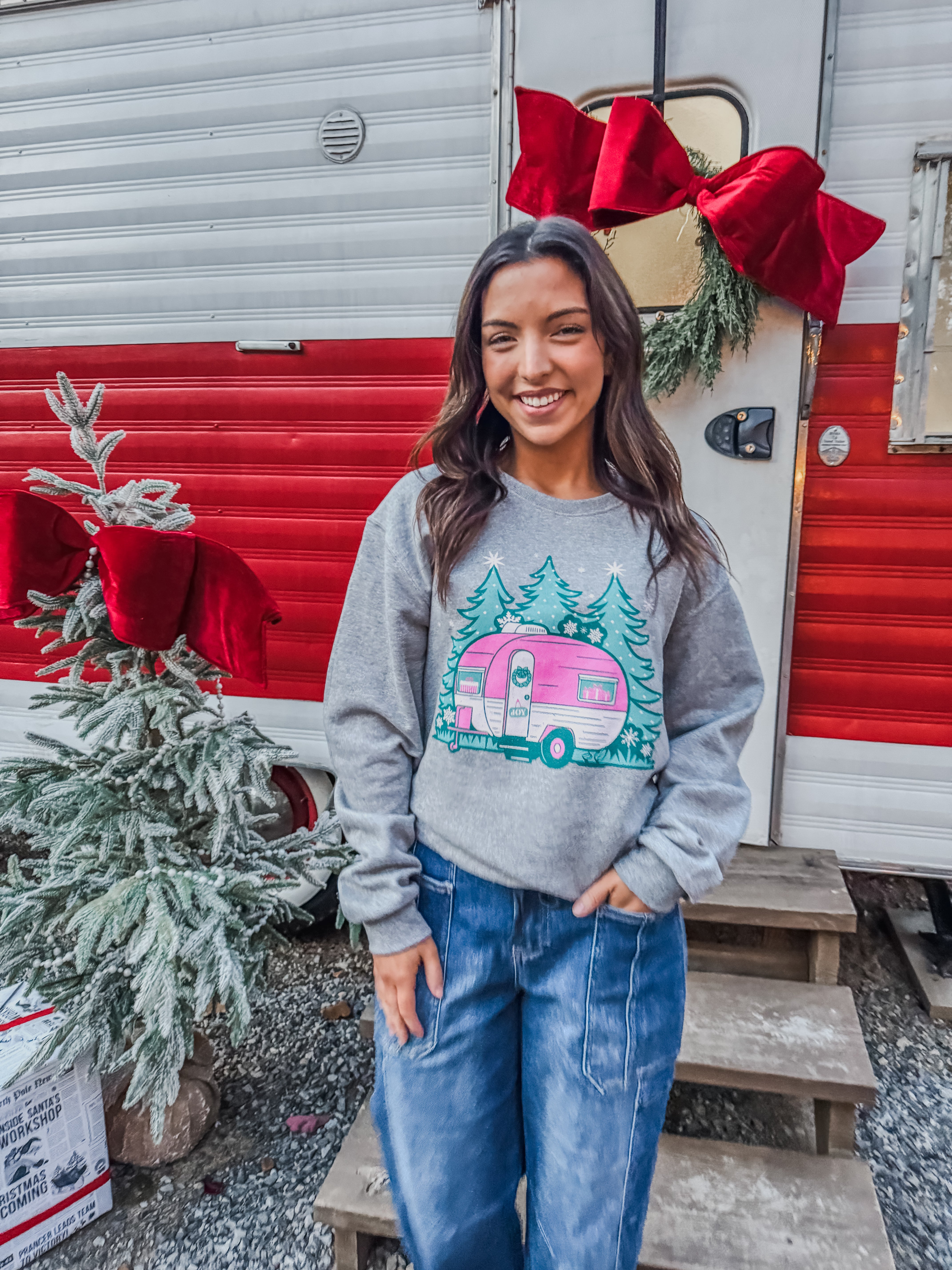Christmas Camper Graphic Sweatshirt • Heather Grey